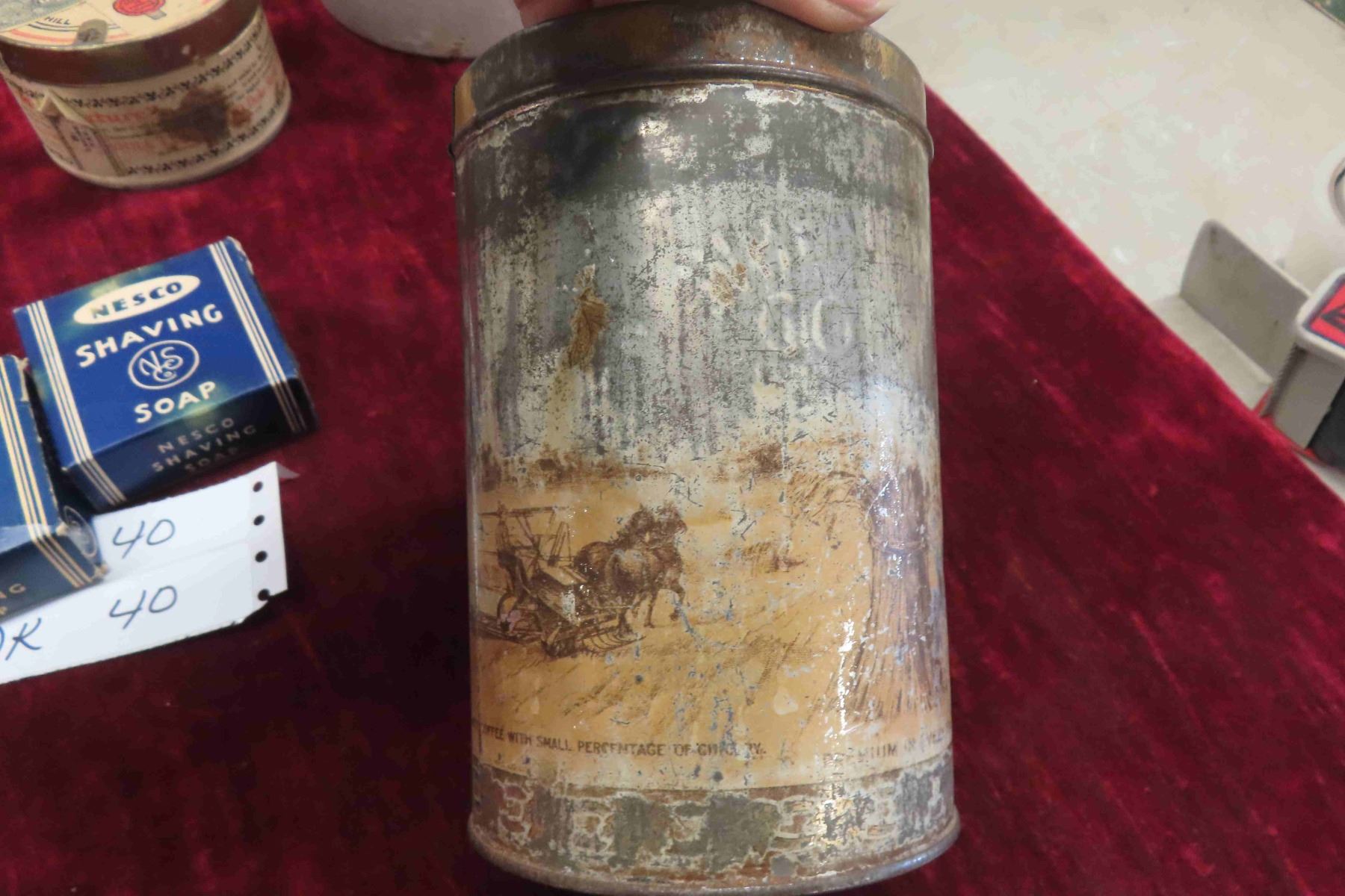 Good Standard Coffee Tin Winnipeg, Tobacco Tin, 2 Nesco Shaving Soaps, John O' Reilly Hignors Portage la Prarie, Finger Pull is Broken