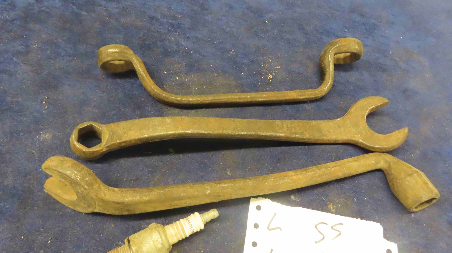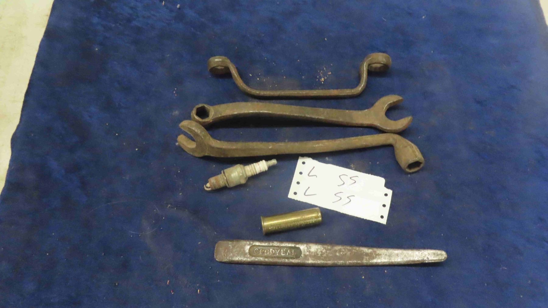 Goodyear Motorcycle Tire Pry- Vintage, Schader Universal Air Gauge, Old Wrenches - 2 With Ford Label