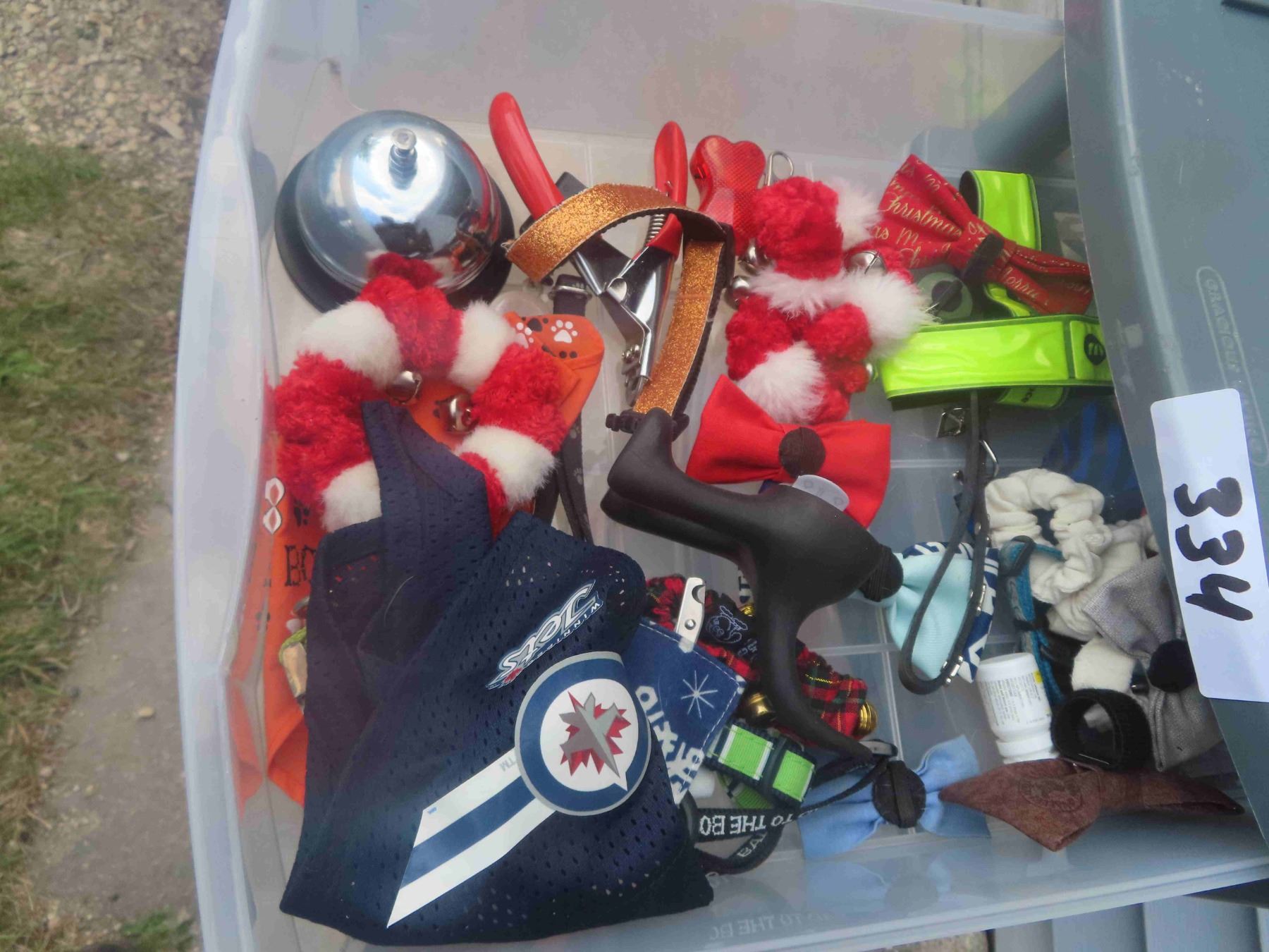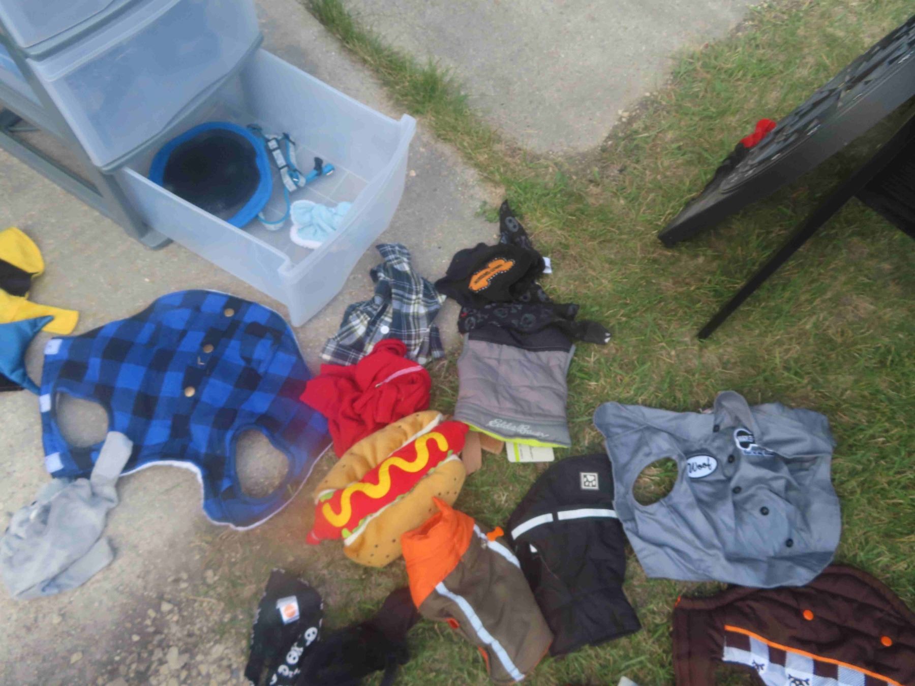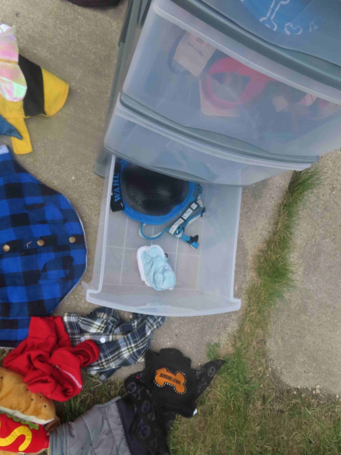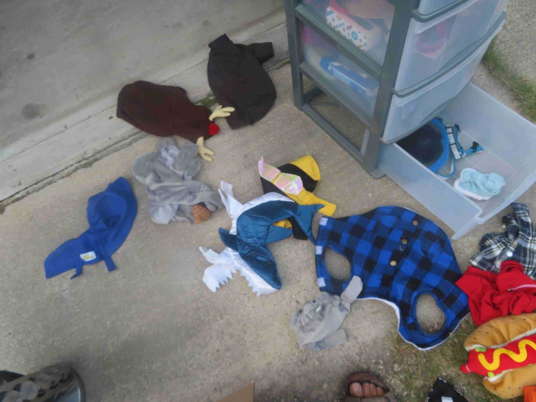 Gracious Living Organizer FULL of Small Dog Costumes, Collars, Hats, Accessories, Boots , Plus - Was for Chinchuaha for Size Reference ( Louis Got The Shark, Shark Not Included )
