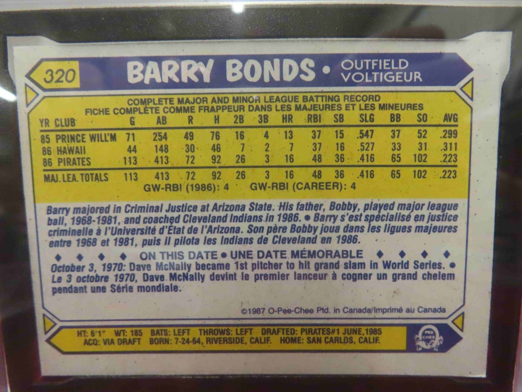 Graded Barry Bonds Rookie O-Pee-Chee Baseball Card