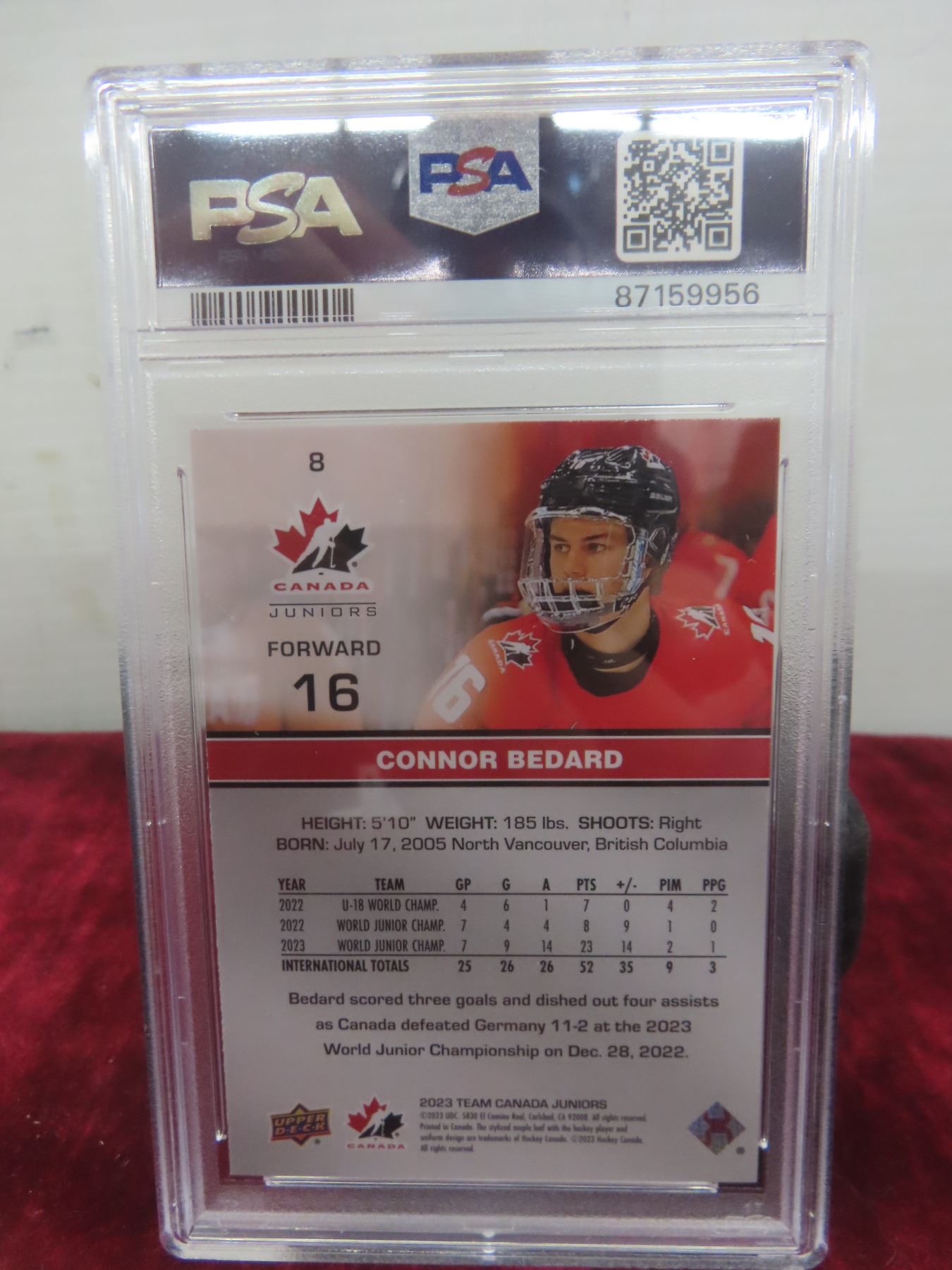Graded Connor Bedard Team Canada Card
