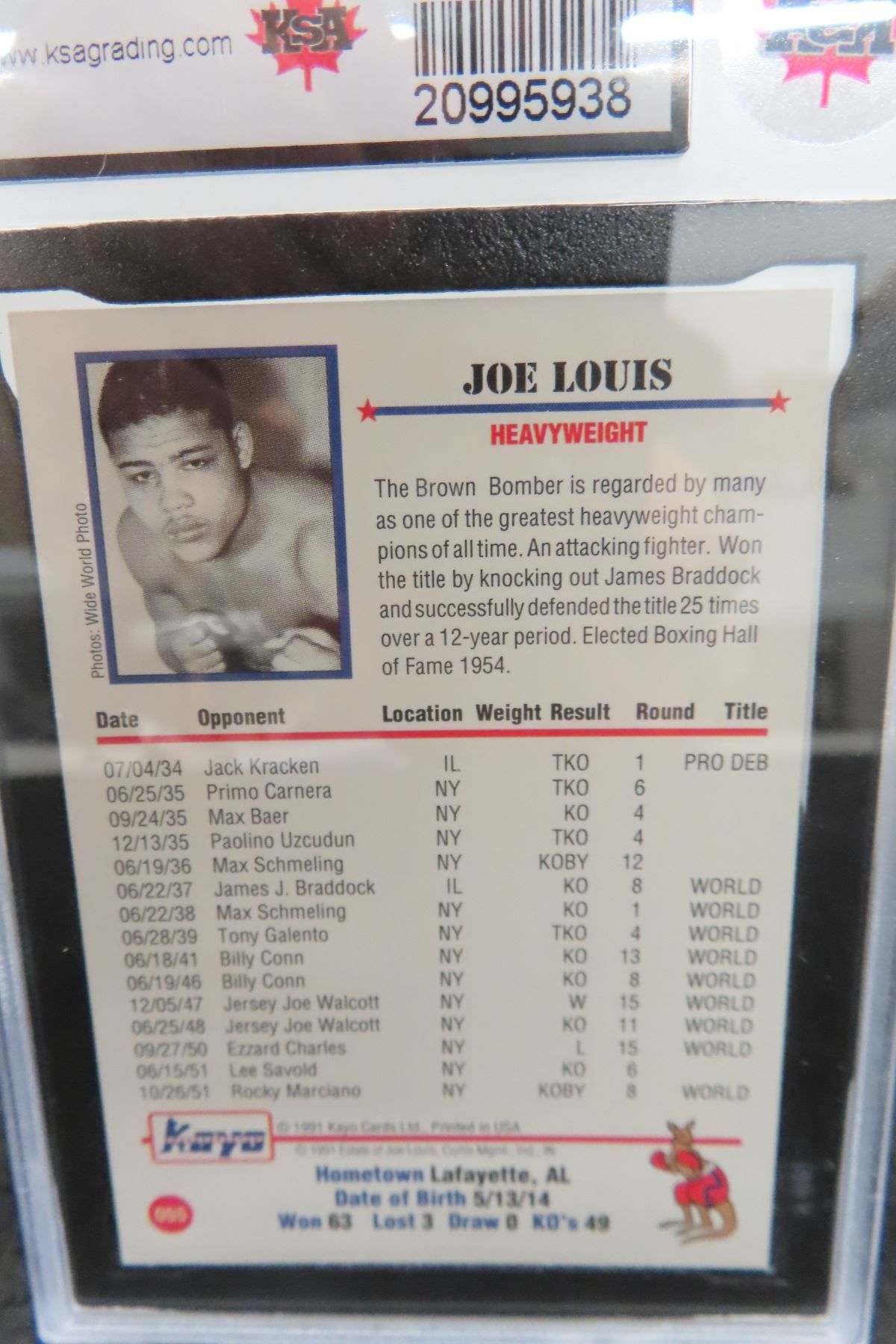 Graded Joe Louis Boxing Card