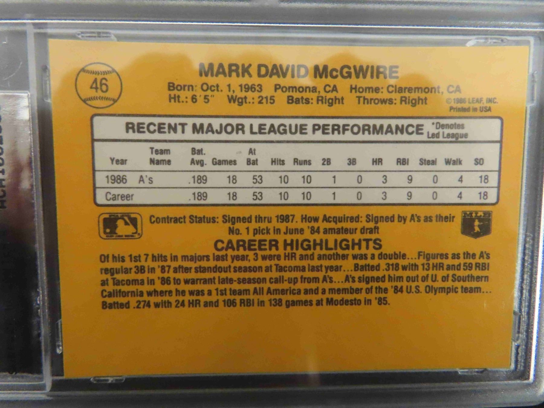 Graded Mark McGuire Baseball Rookie Card
