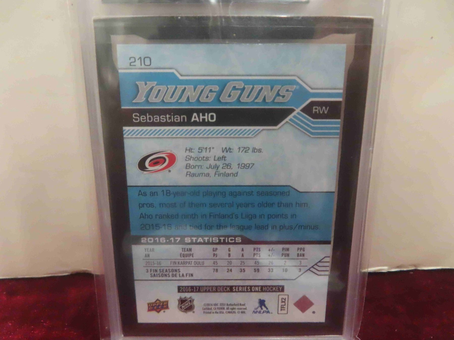 Graded Sebastian Aho Young Guns Rookie Card