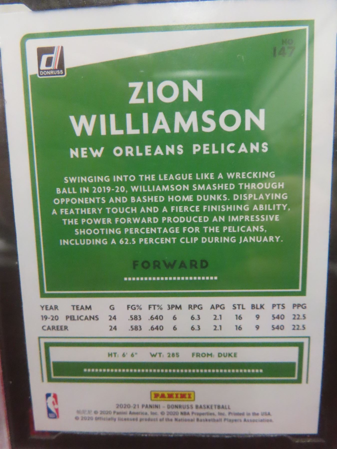 Graded Zion Williamson Green Yellow Laser Card