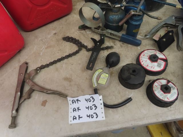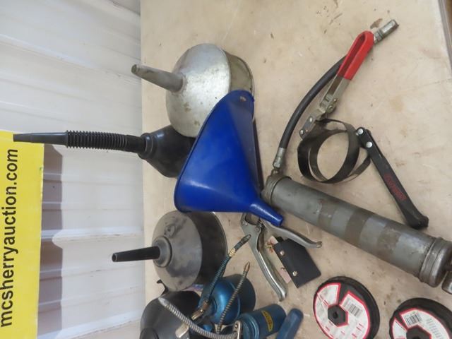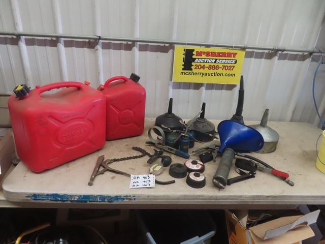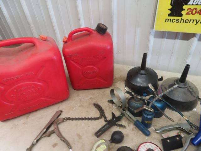 Grease Guns, Oil Squirt Cans, Oil Filter Wrenches, 2 Gas Cans