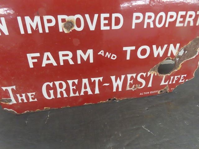 Great West Life Insurance Porcelain Sign - Rough Condition 12" x 18"