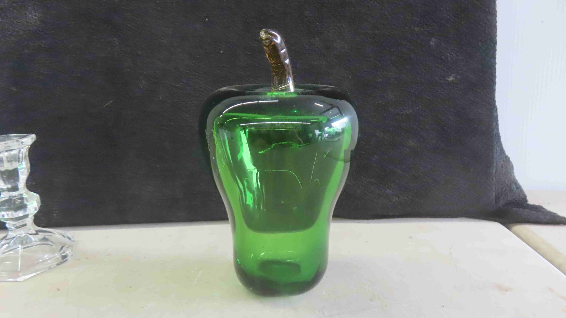Green Apple Art Glass 8'' x 5'' , Matching Kaspar Bleikristall Candle