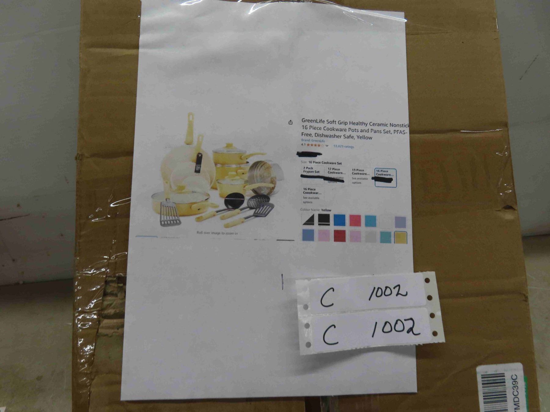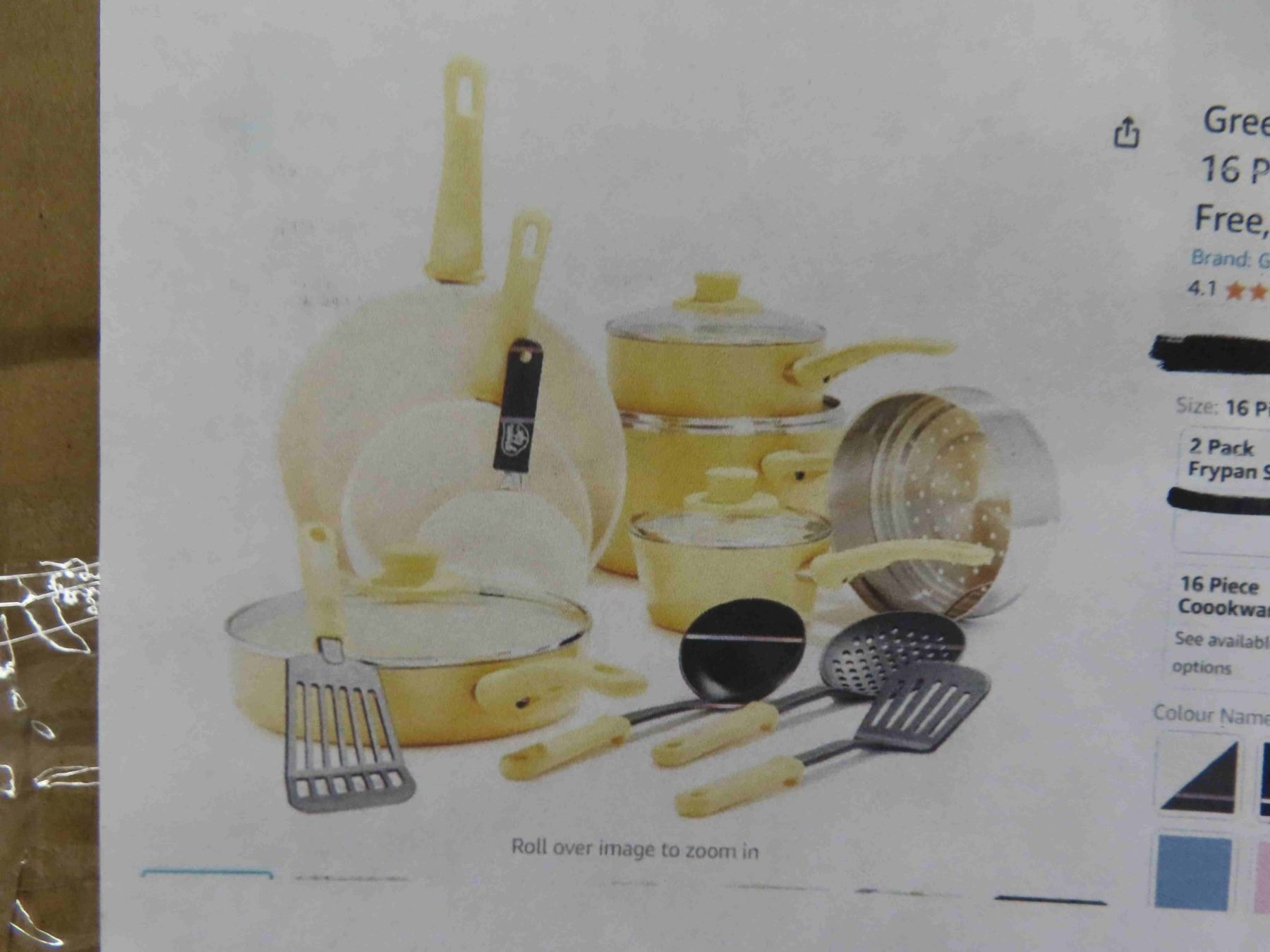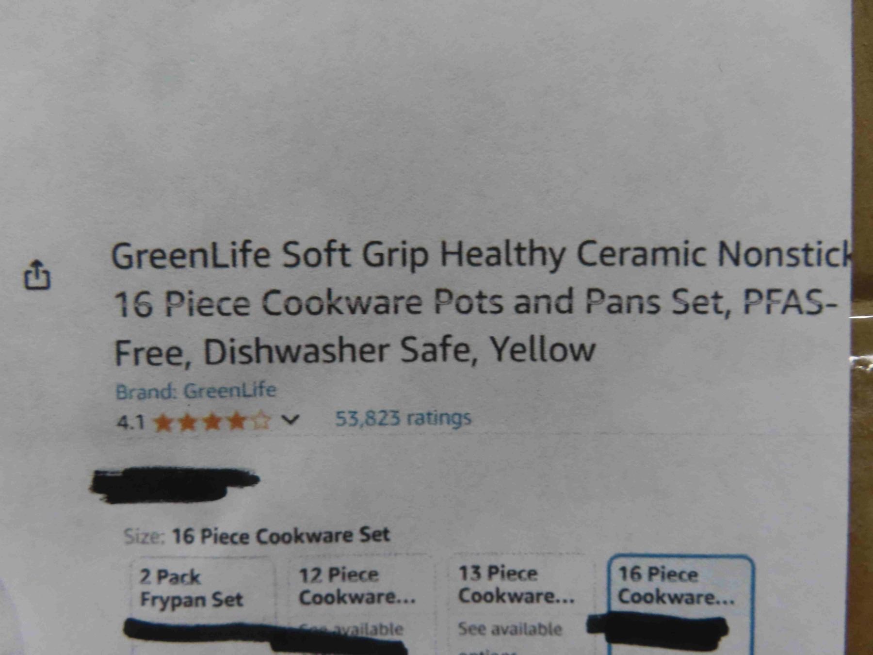 Greenlife Soft Grip Healthy Ceramic Nonstick 16pce Cookware Pots and Pans Set PFAS Free, Dishwasher Safe, Yellow - New or Store Return