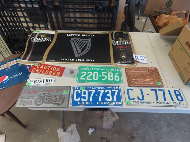 Guiness Beer Sign (Metal) 1 Metal & 1 Glass Beer Sign, Metal Car Sign, Reflective Caution Sign, Porc Bistro Sign, Copper Coast Gurad Sign, License Plates, 1930 MB Chaufffers Badge