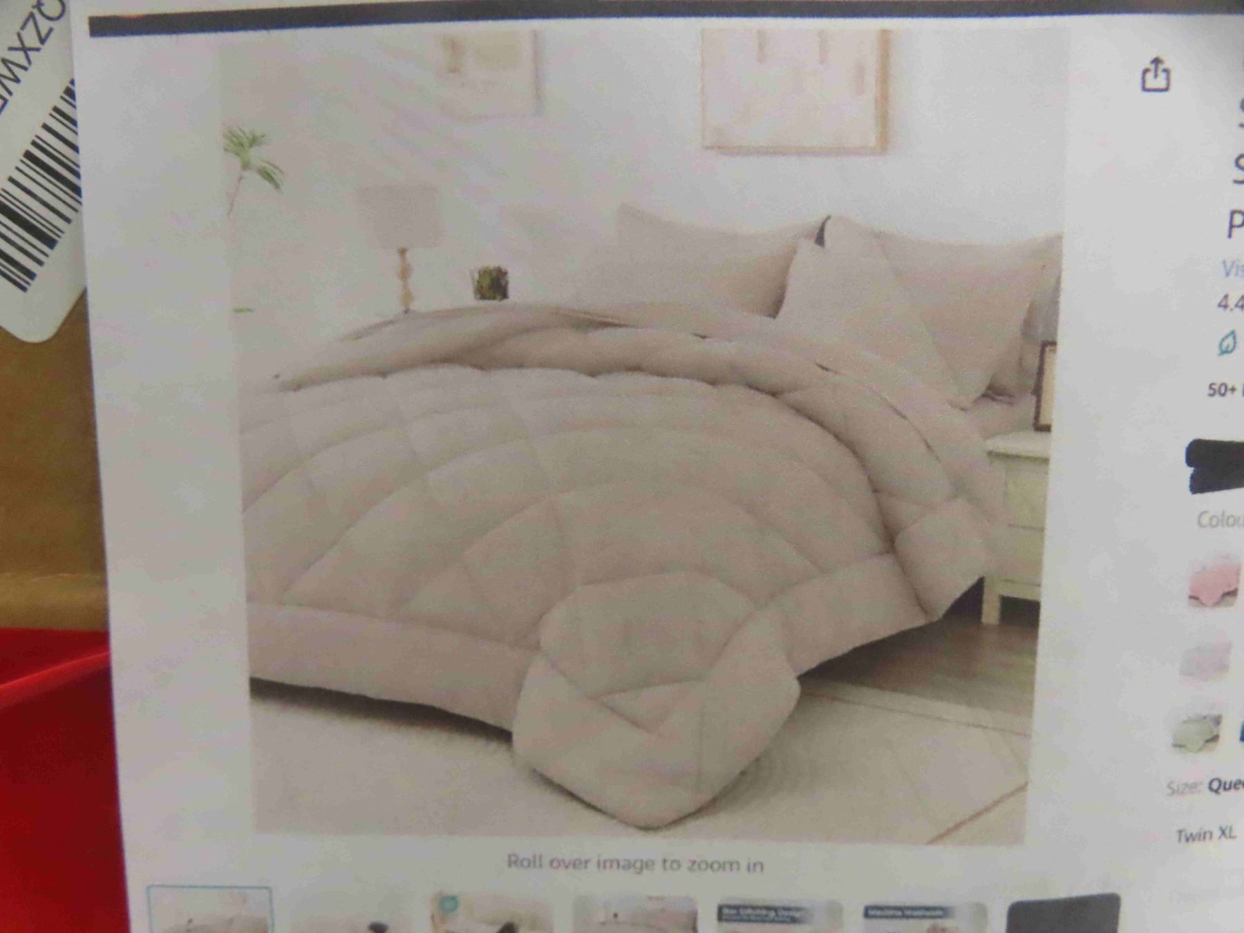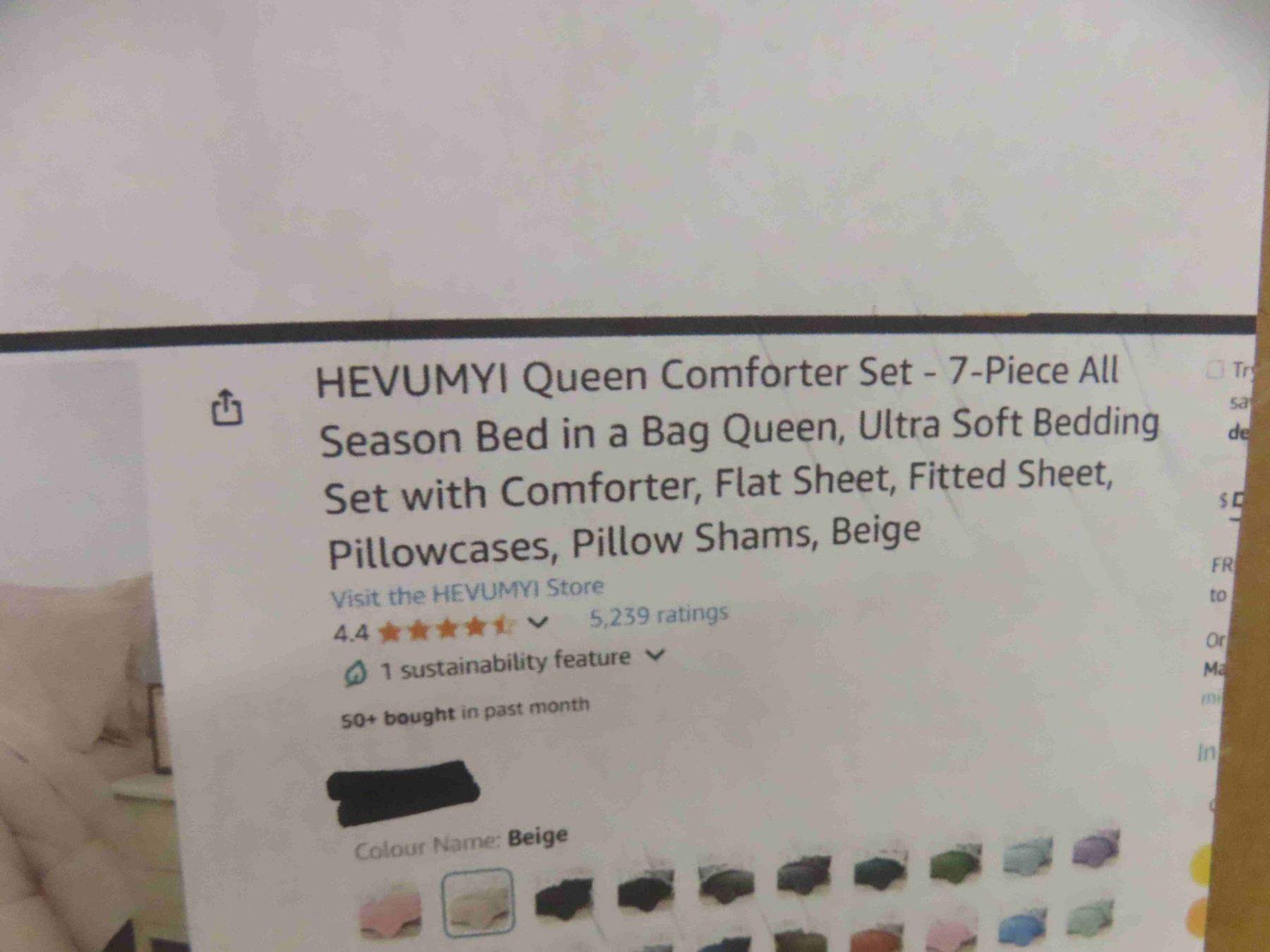 HEVUMYI queen comforter set- 7 piece all season bed in a bag queen, ultra soft bedding set with comforter, flat sheet, fitted sheet, pillow cases, pillow shams, beige. New or store return
