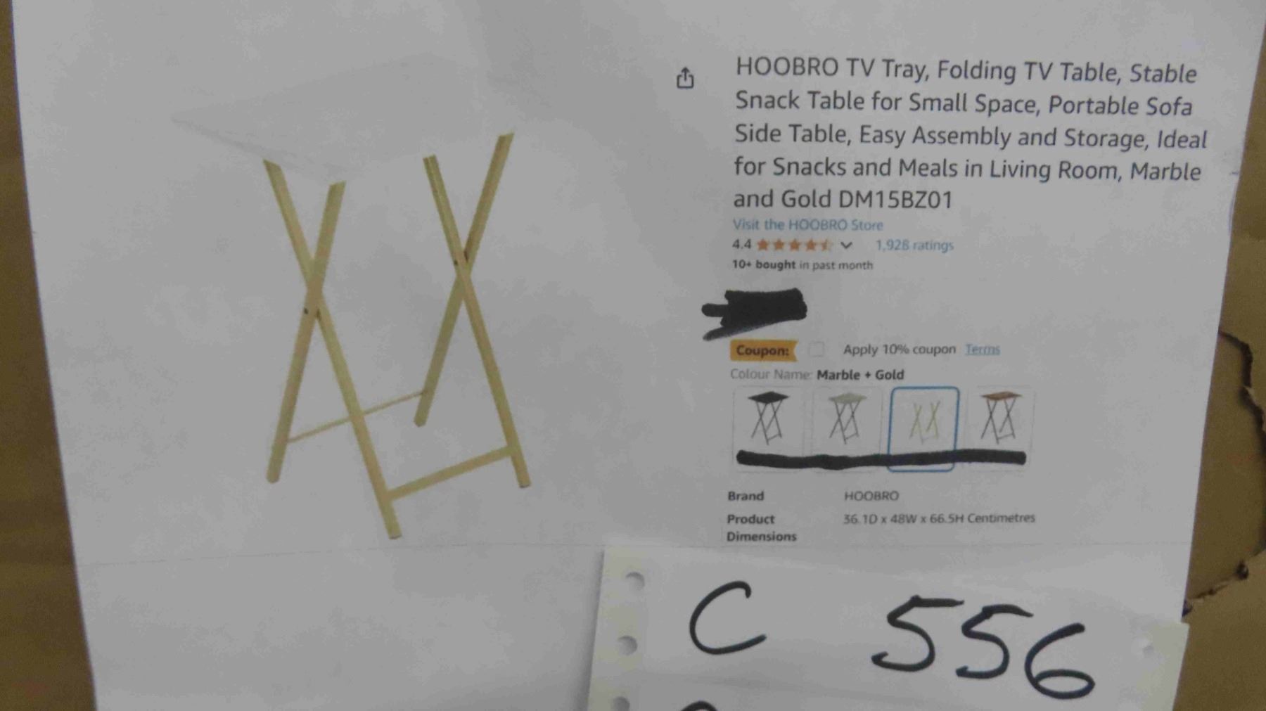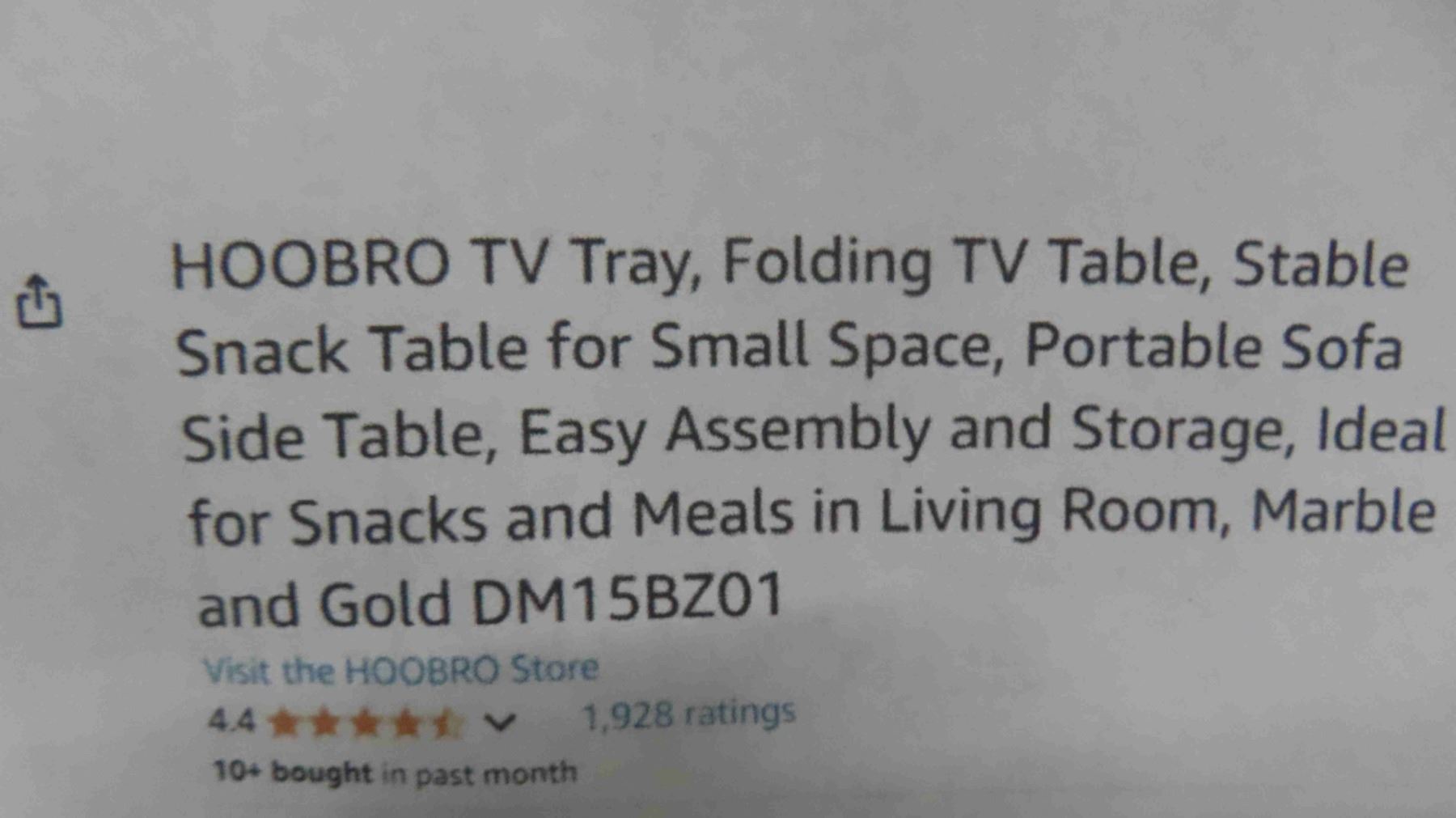 HOOBRO TV Tray, Folding TV Table, Stable Snack Table for Small Space, Portable Sofa Side Table, Easy Assembly and Storage, Ideal for Snacks and Meals in Living Room, Marble and Gold DM15BZ01 - New or Store Return
