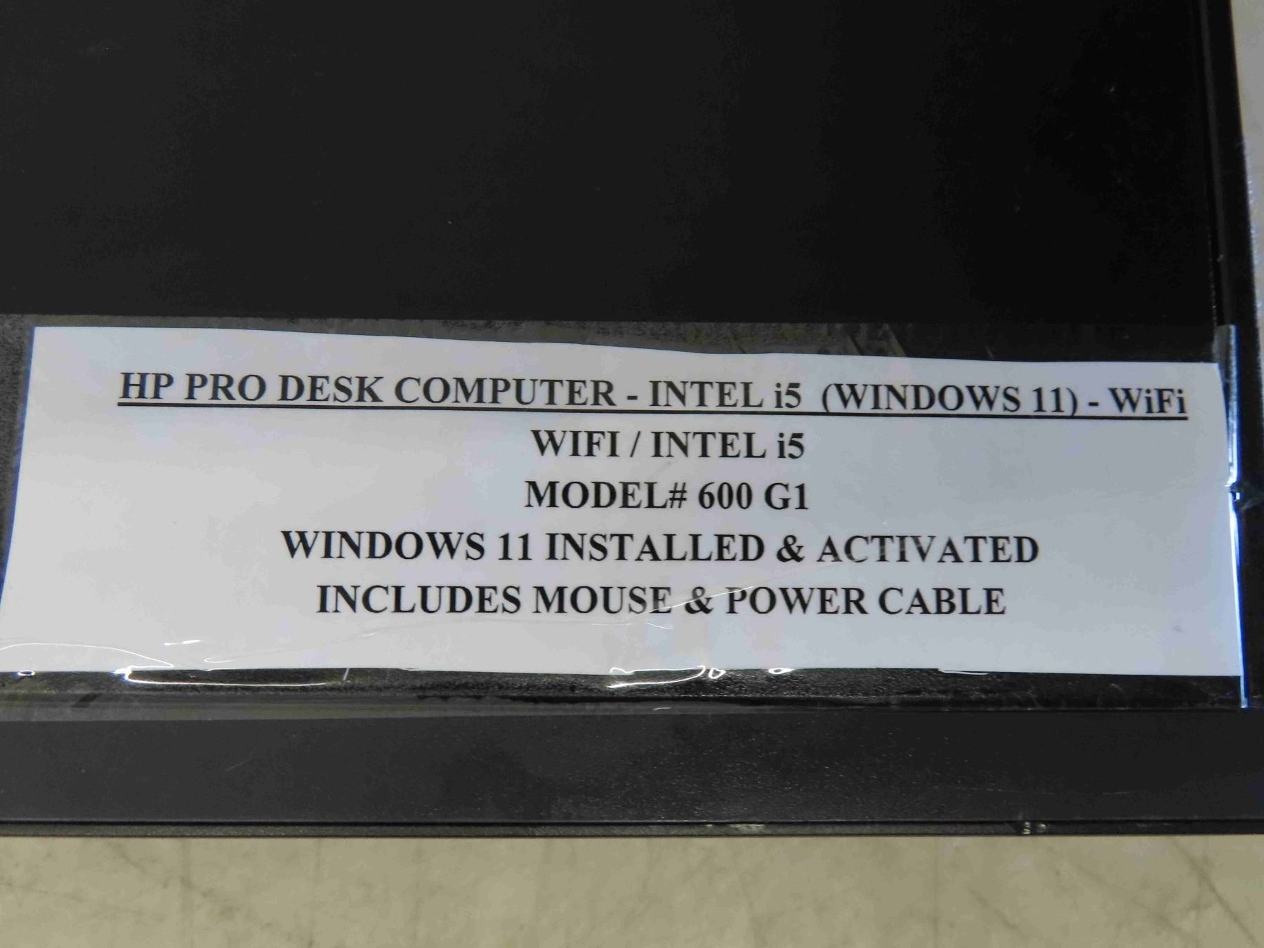 HP Pro Desk Computer #600GI with Intel i5, Wifi, Windows 11 Installed and Activated, Mouse & Power Cable
