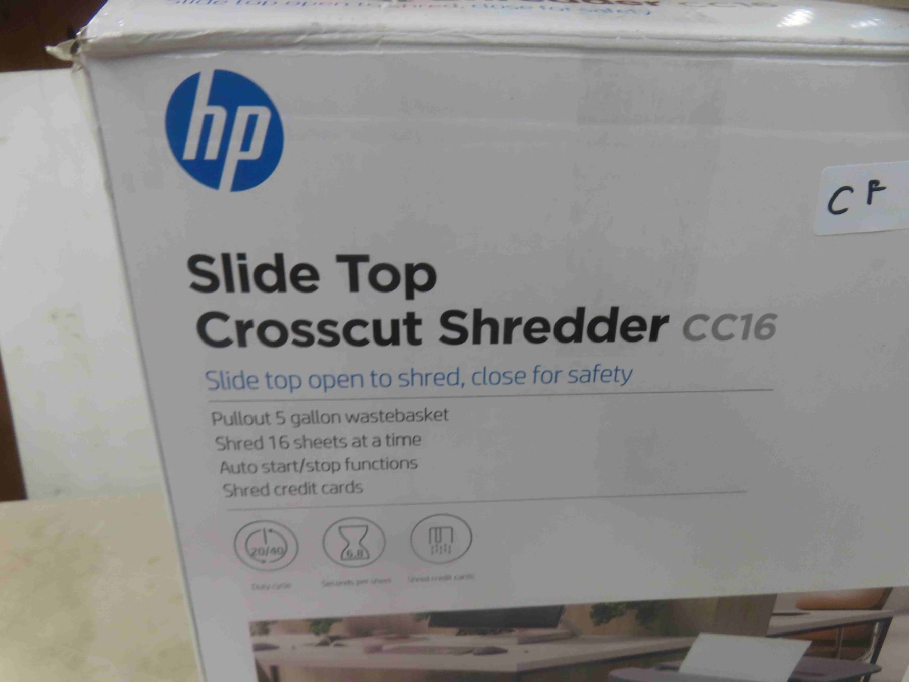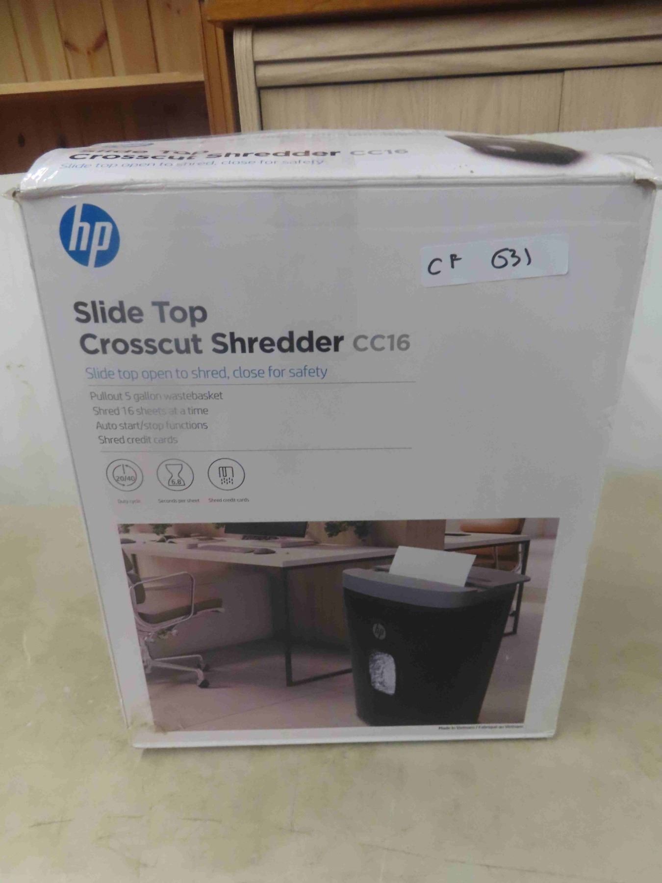 HP Slide Top Cross Cut Shredder Model CC16 - New or Store Return