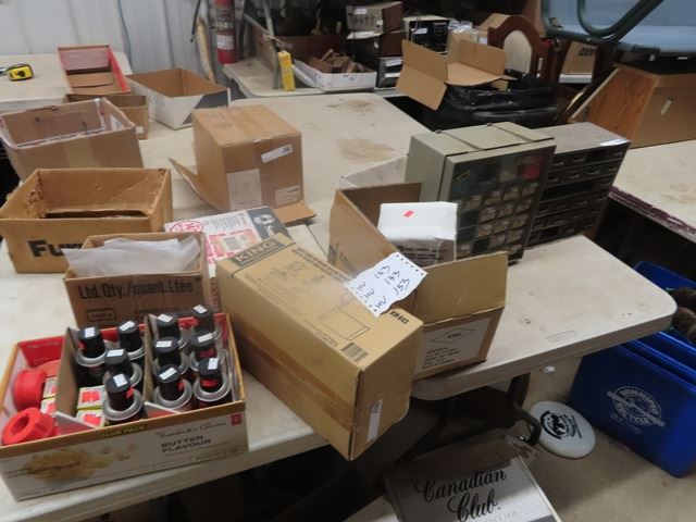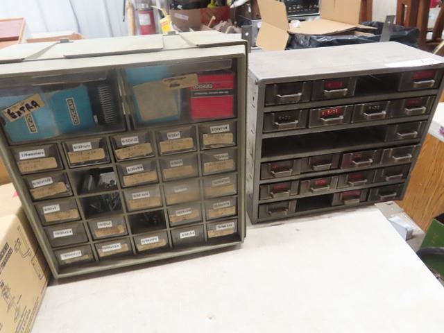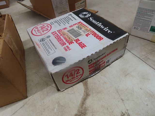 (HV)2 Organizers Bolt Bins, Full of Hardware, Southwire Outdoor Electrical Wire, Spray Cleaner, Plus