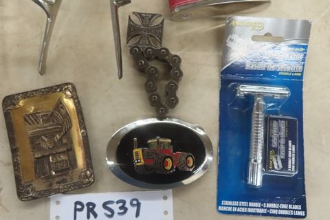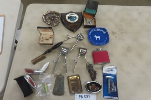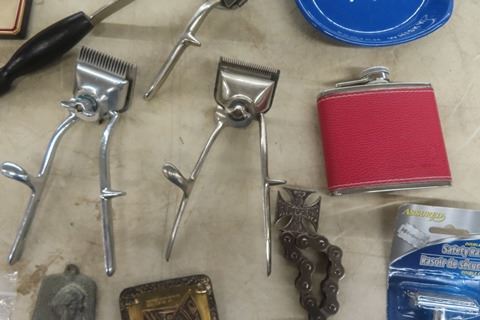 Hair Clippers, Ashtrays, Razor, Cuff Link Set, Versatile Belt Buckle, 2 Pocket Knives plus more