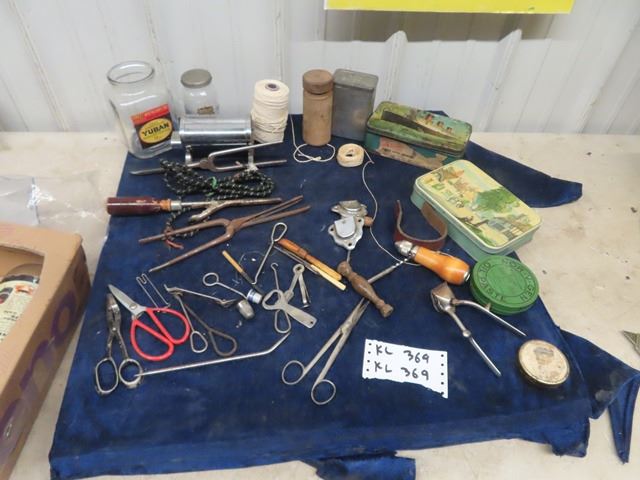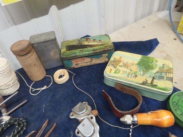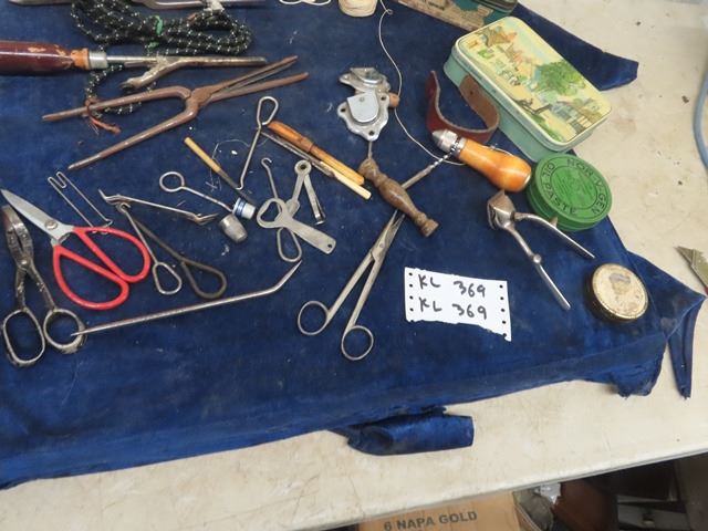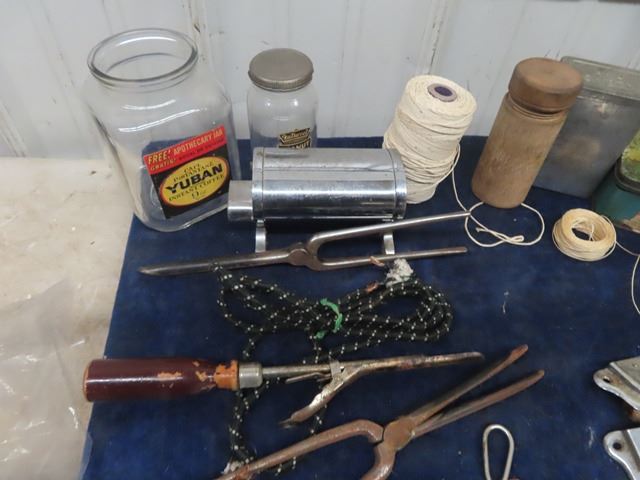 Hair Curling Iron, Scissors, Various Tins, Jars plus more