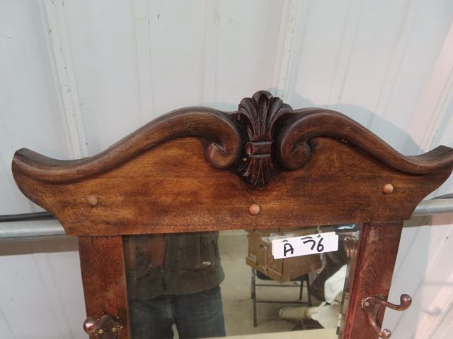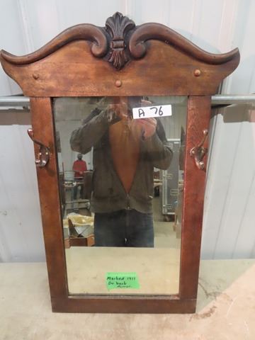 Hall Mirror - Bevelled Glass w 2 Hooks 16" x 30"