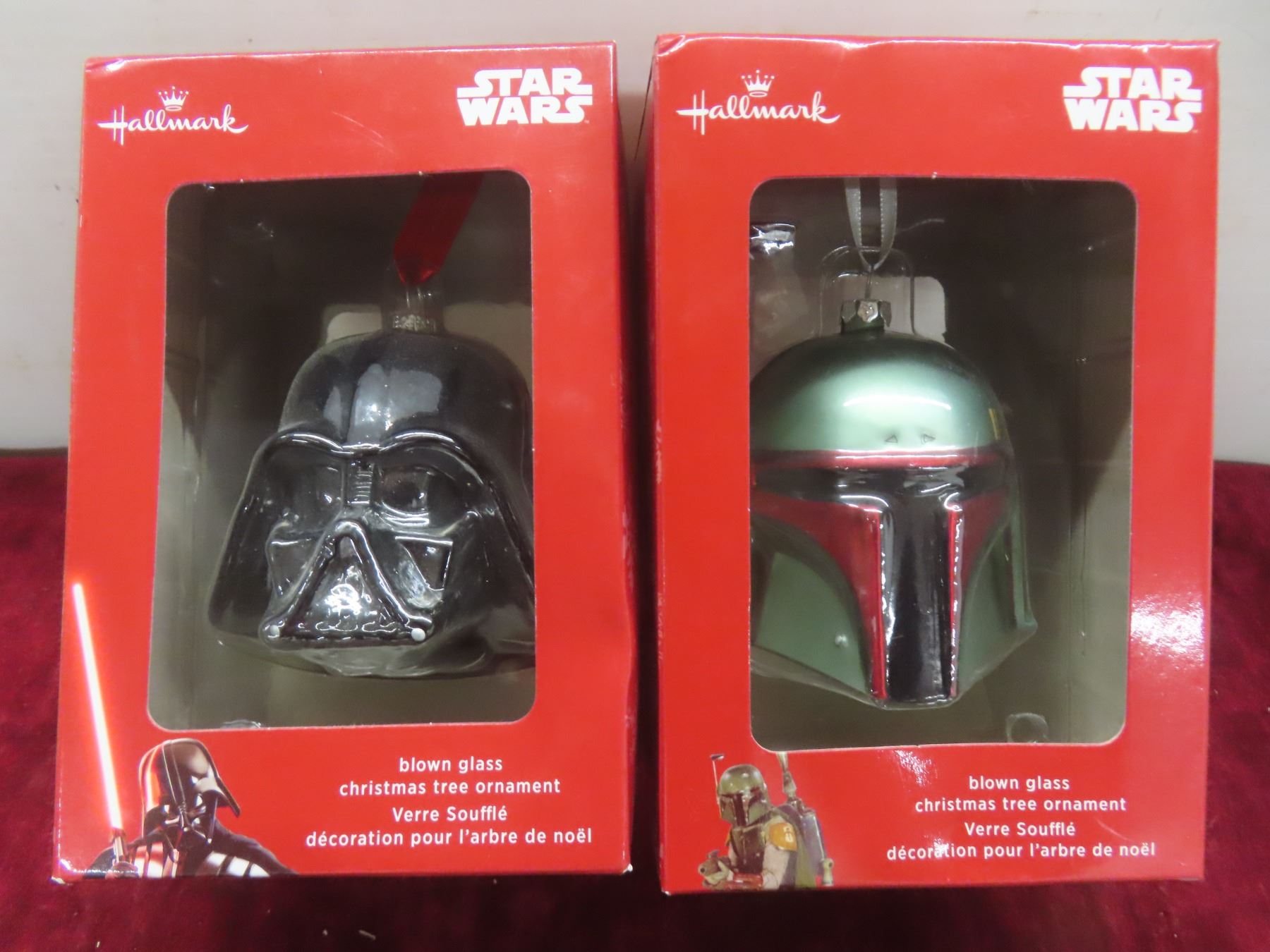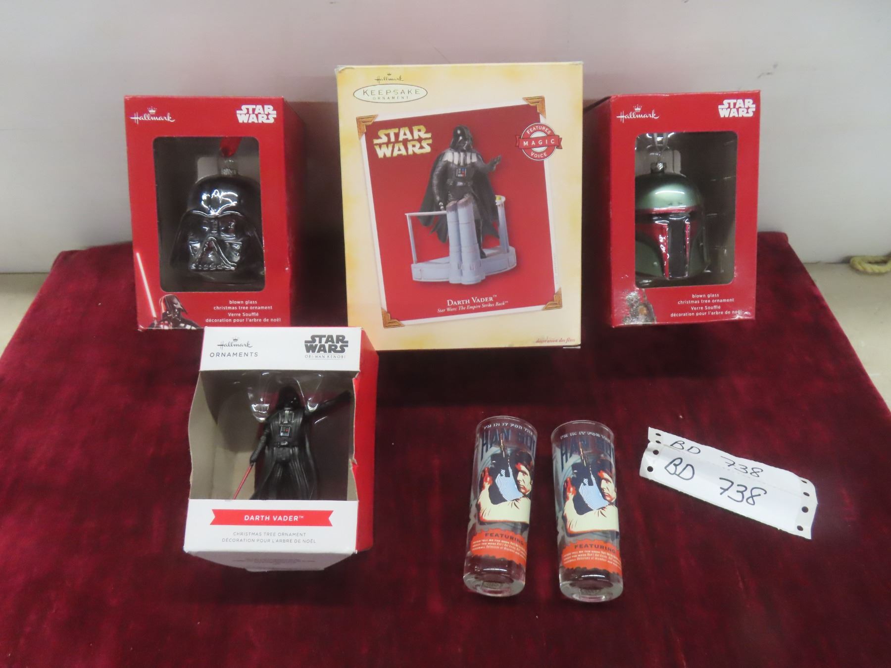 Hallmark Star Wars Christmas Ornaments Lot: 2 Blown Glass Boba Fett/darth Vader Plus Large Talking Vader and More