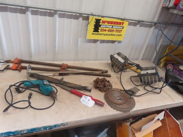 Halogen Light, PIpe Clamp, Power Drill, Nail Puller, Circular Saw Blades