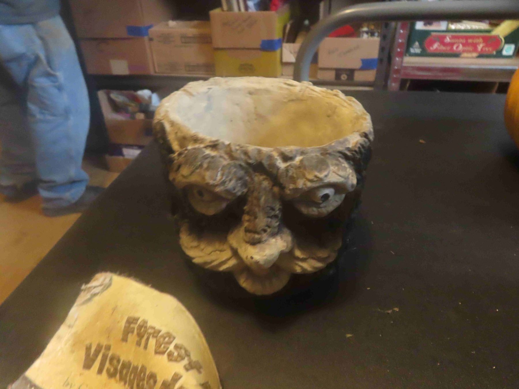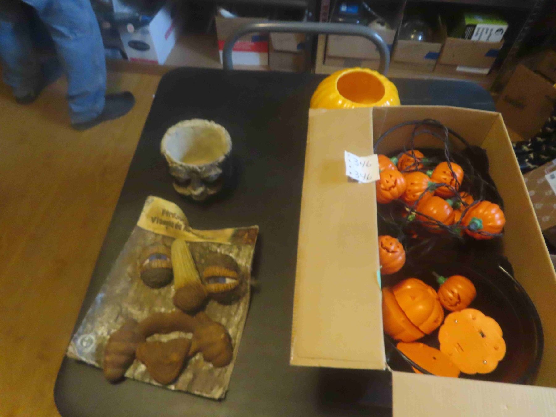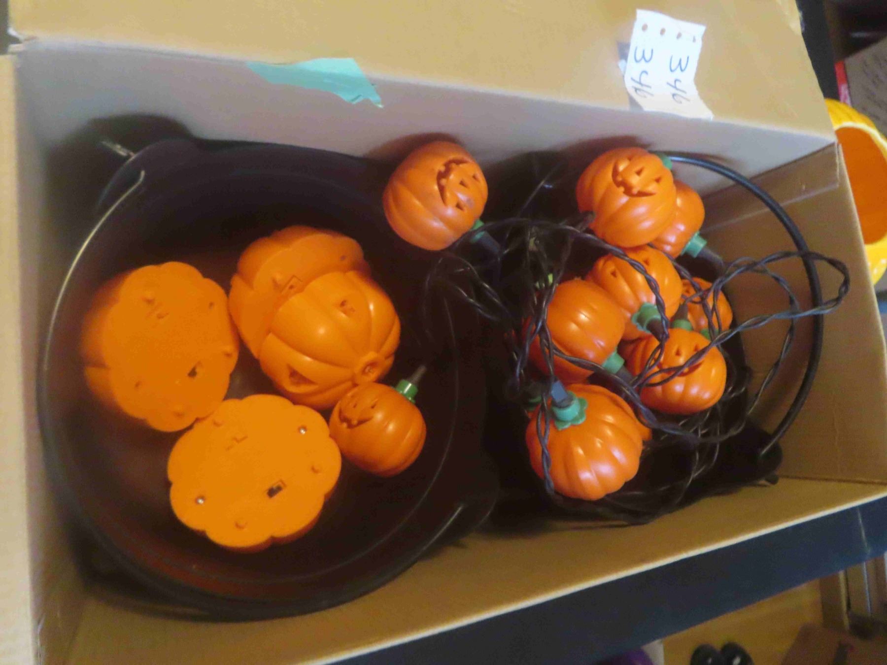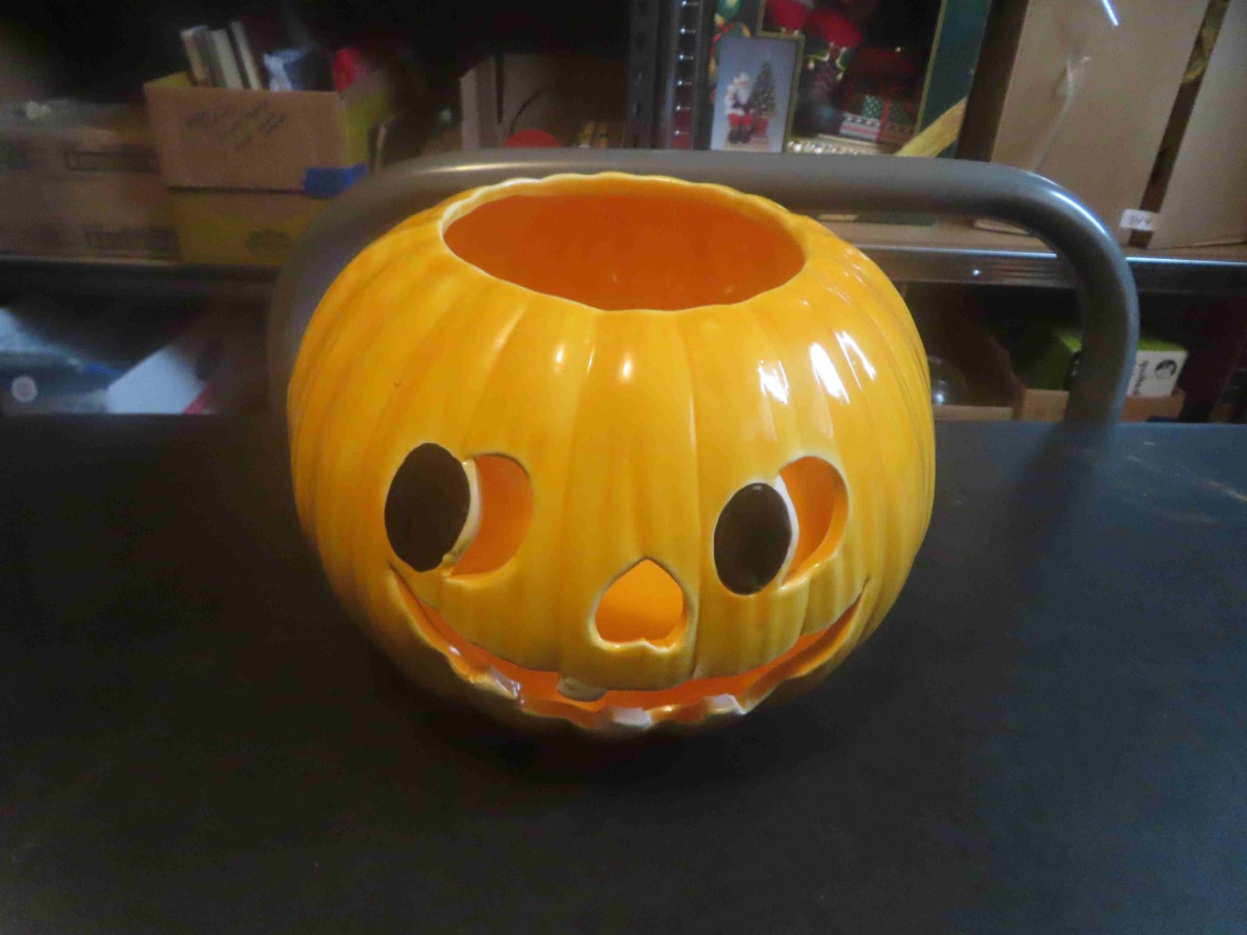 Haloween Decorations: Ceramic Jack-o-Lantern, String Lights, Tree Face