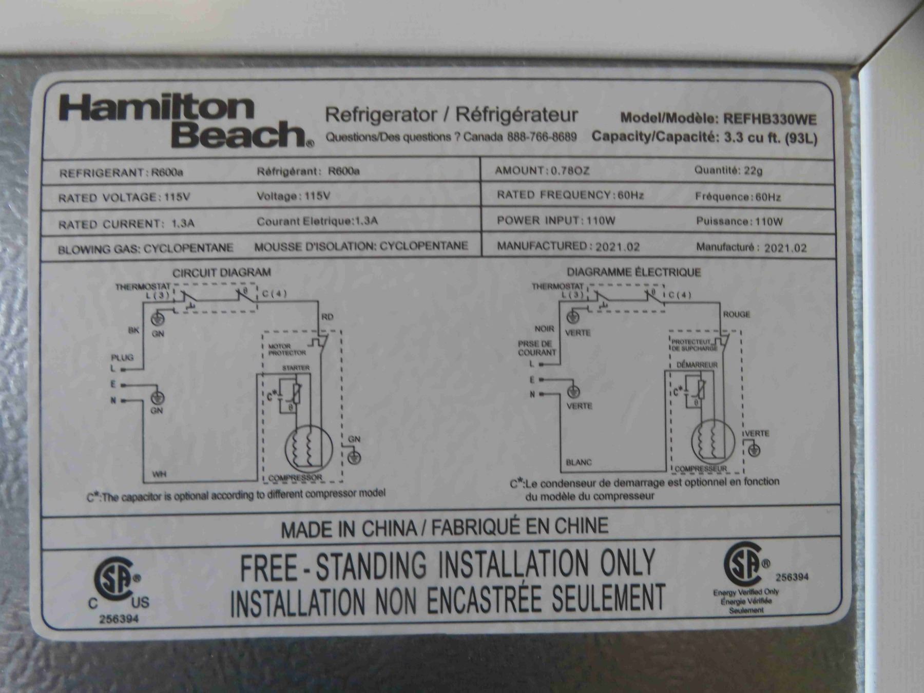 Hamilton Beach Mini Fridge with 2 Shelves -Works