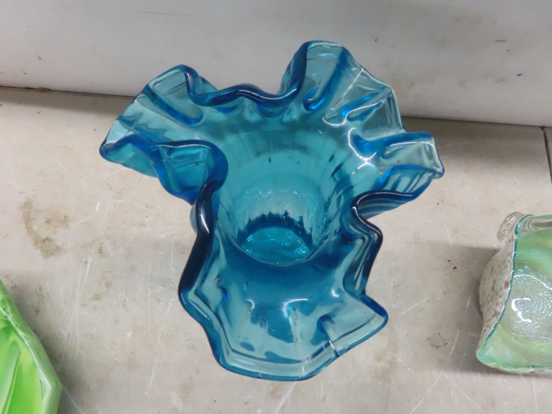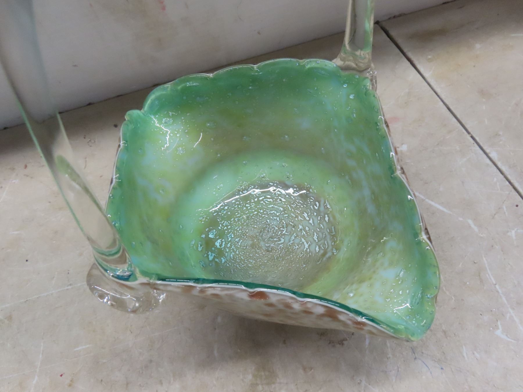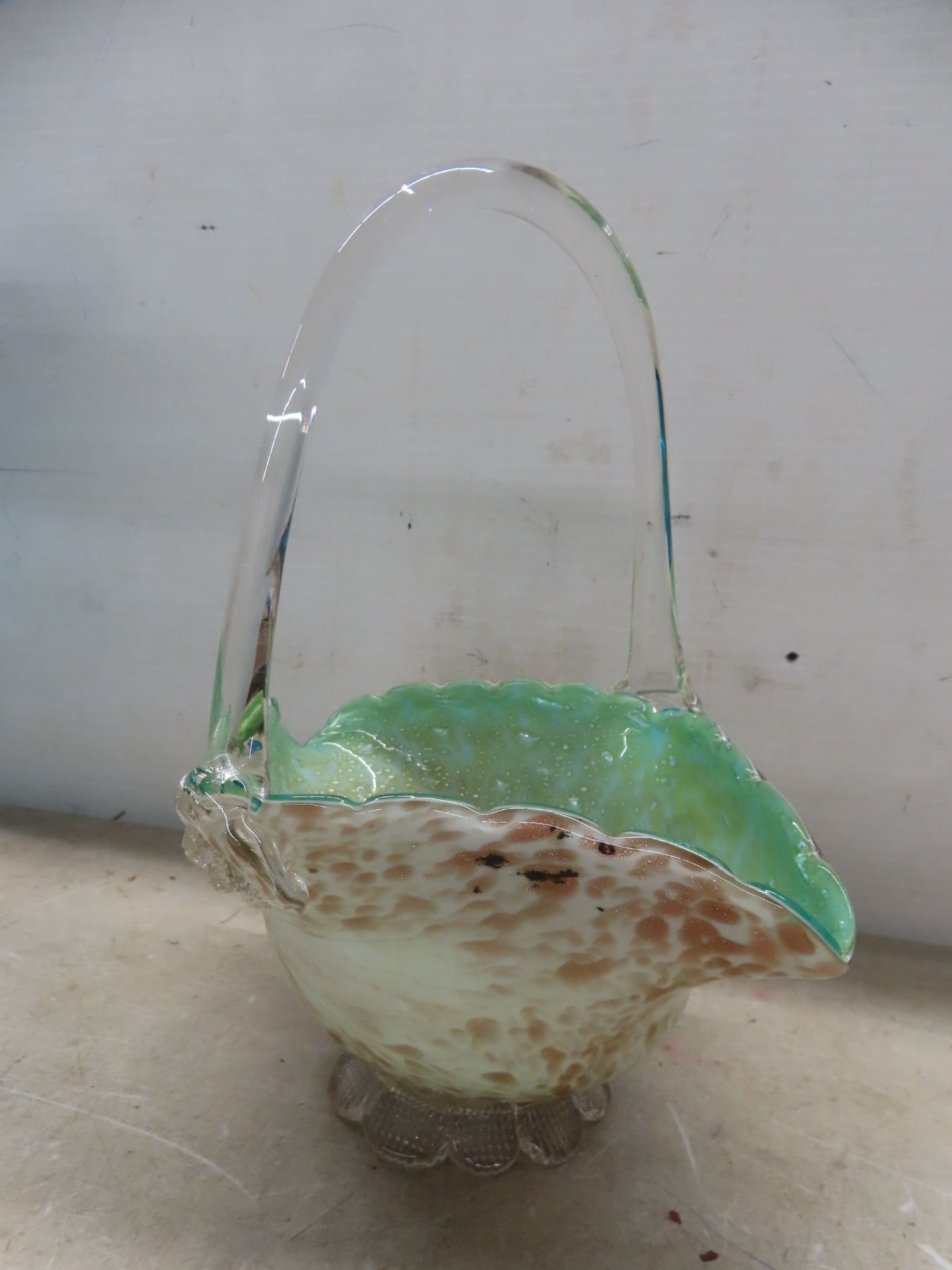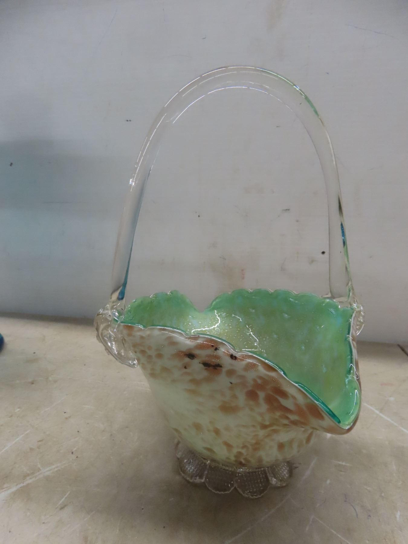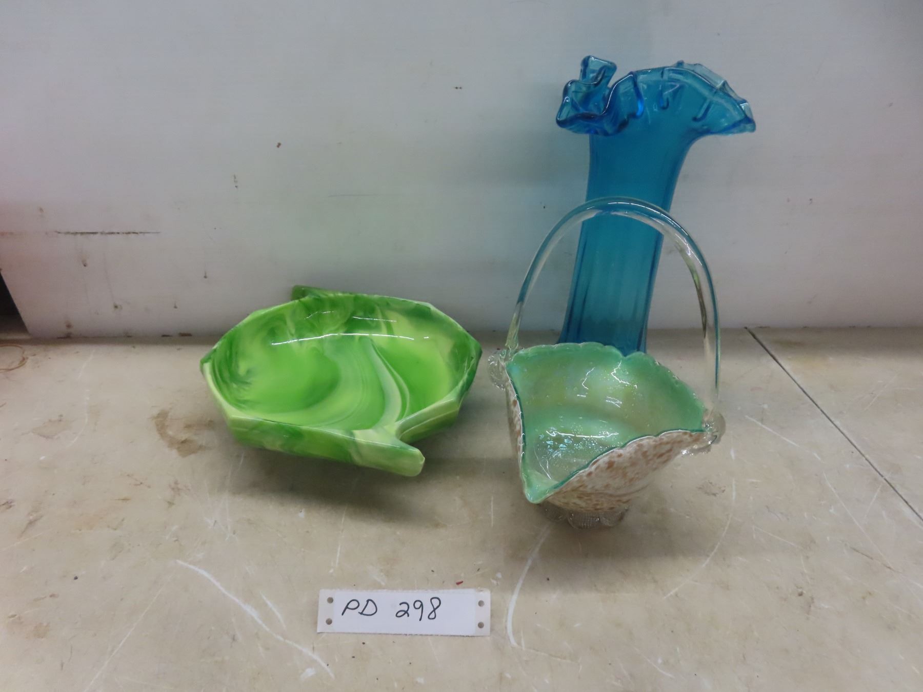 Hand-Blown Glass Vase; Art-Glass Basket And Bowl.