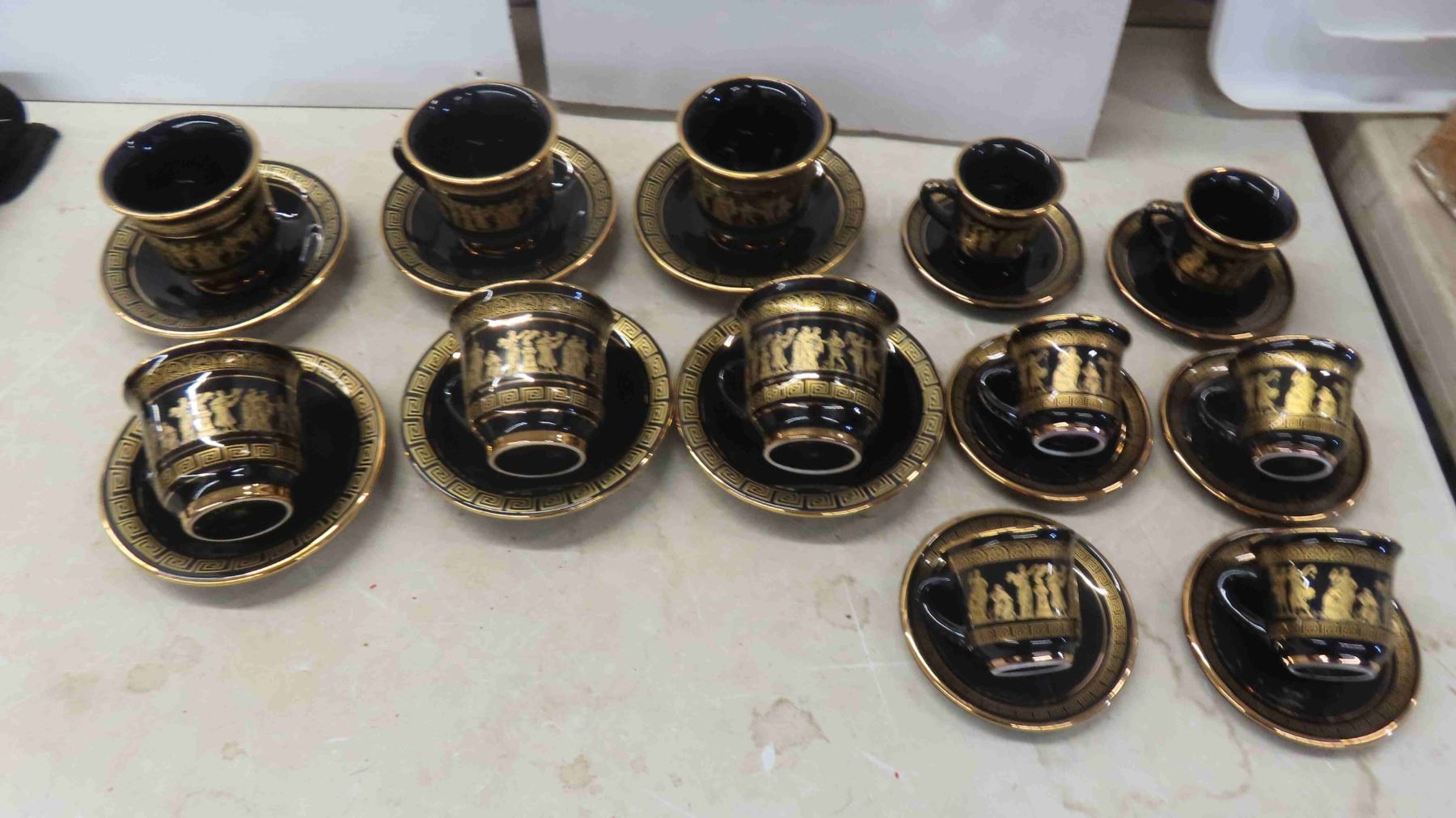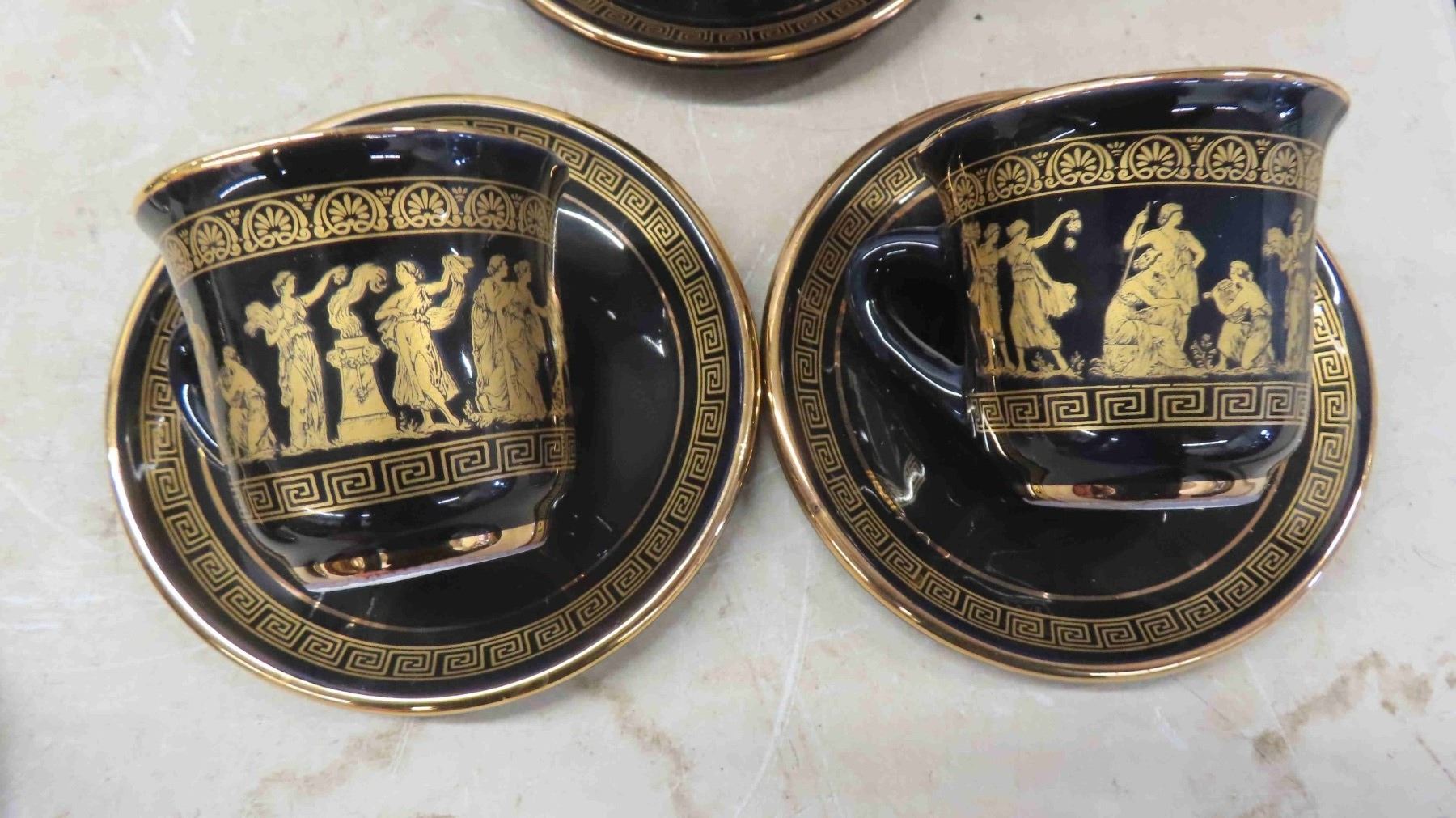 Hand Made 24k KE Greece 12 Cups and Saucers