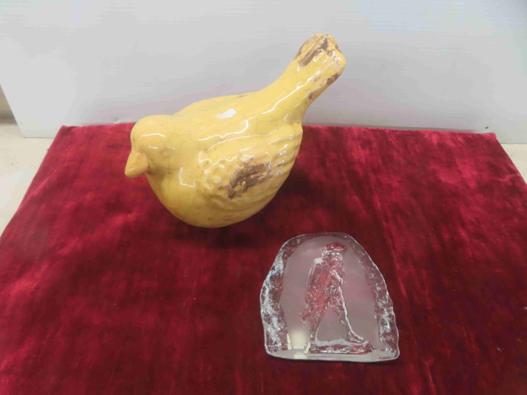 Hand Made Swedish Art Glass by Kosta Boda , Terra Cotta Lawn Bird Ornament Signed Tag Snapphane Glasbruk