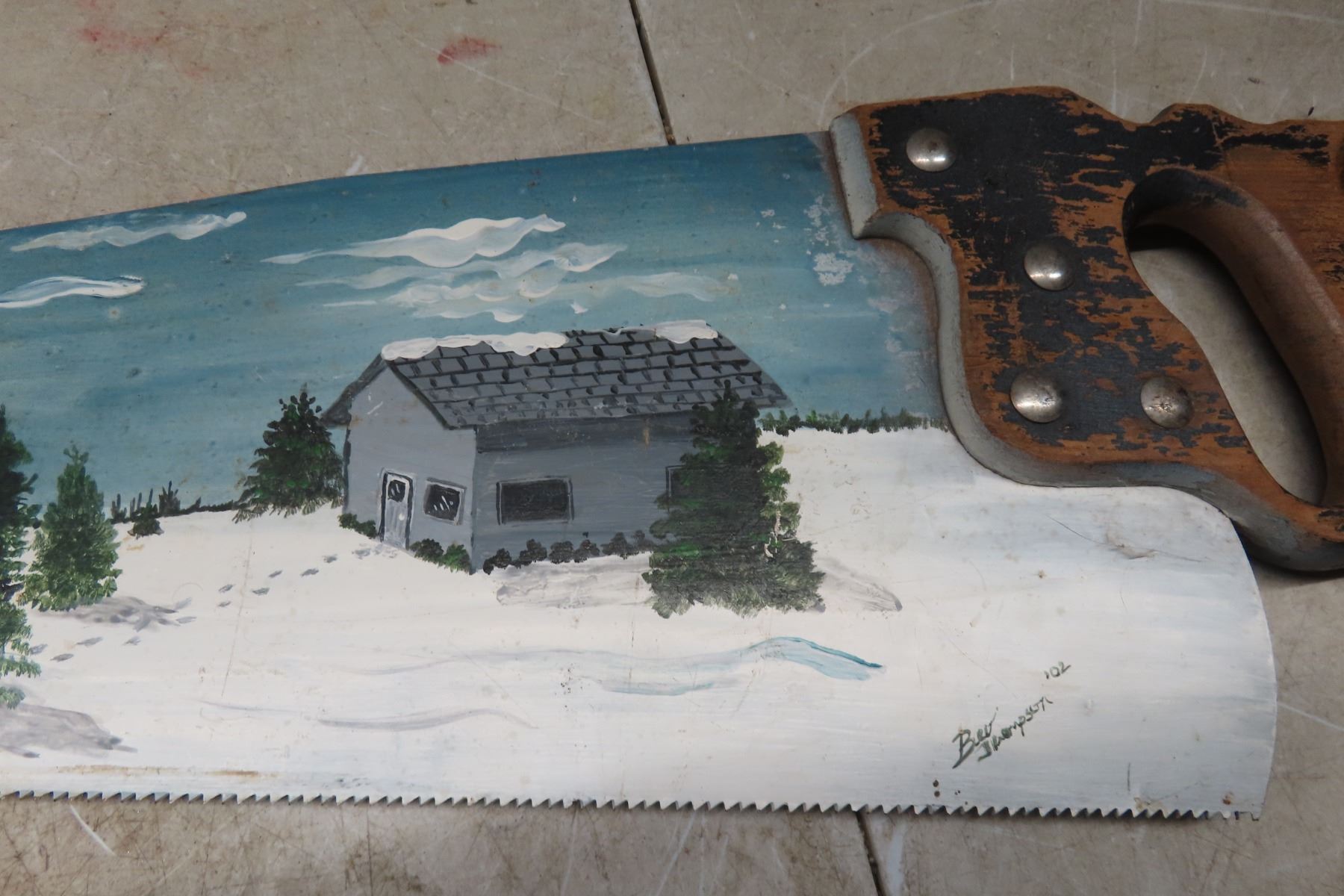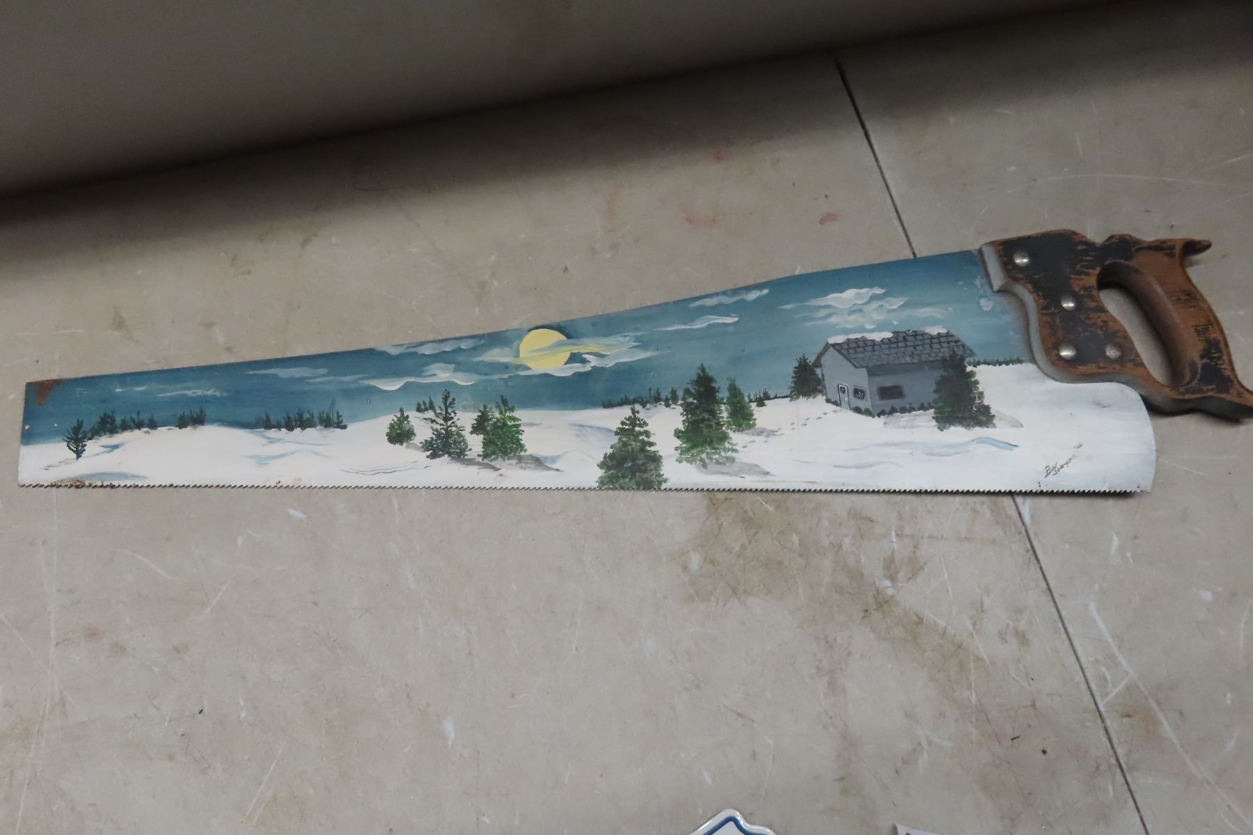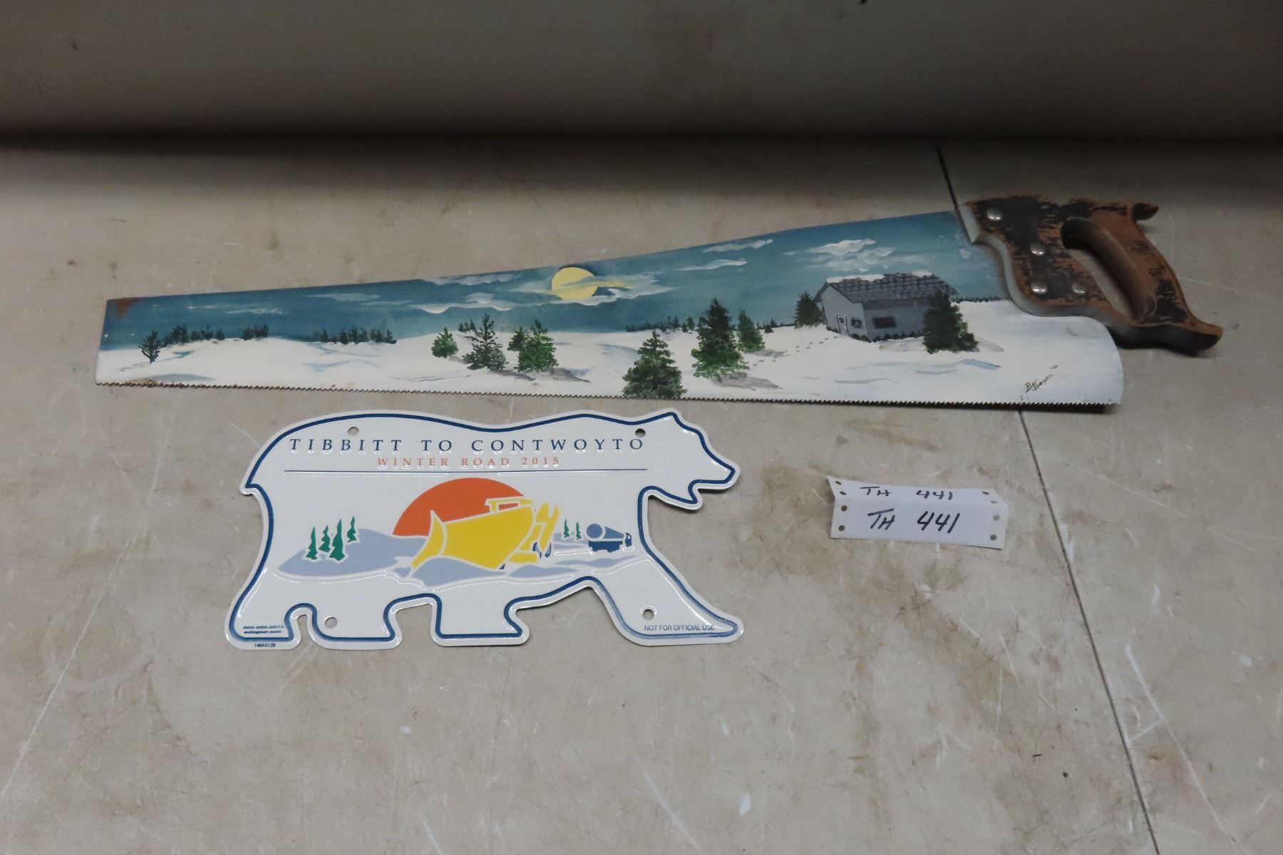 Hand Painted Saw and Novelty Plate 'Winter Road 2015'