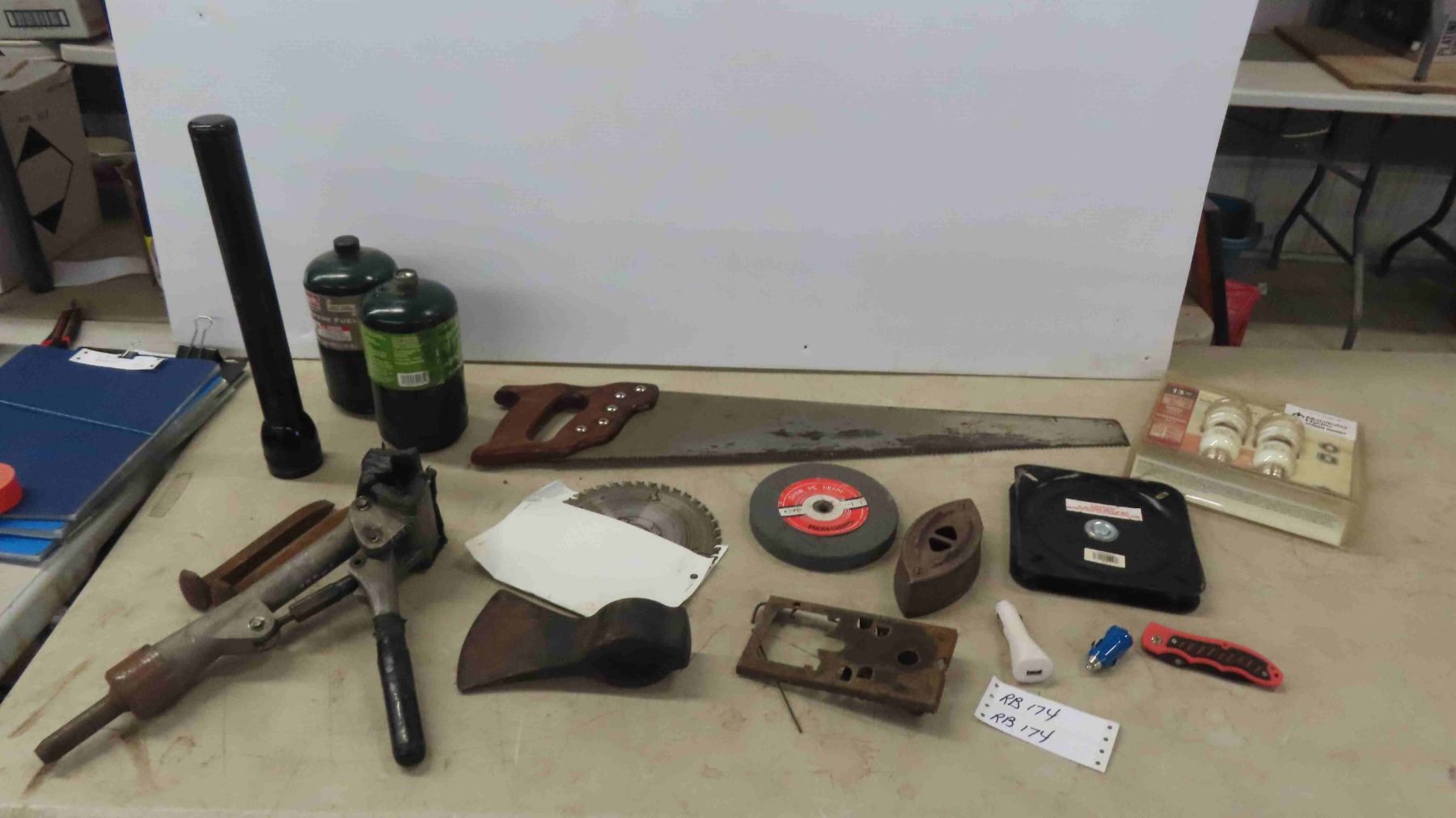 Hand Saw, Clamping Device, Saw Blade Grinding Wheel, Axe Head, Flashlight, plus more