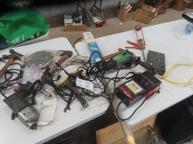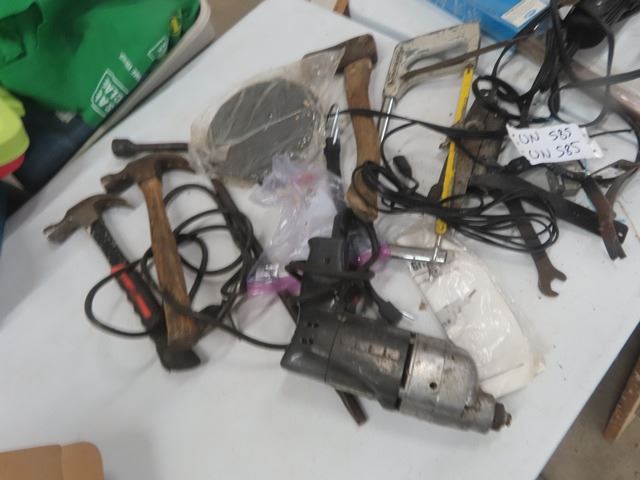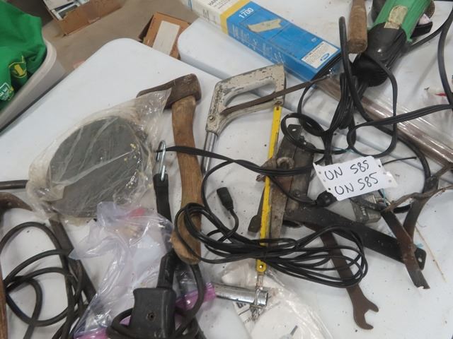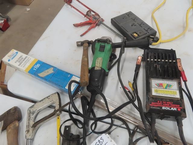 Hand Tools + Odds n Ends of Tools : Hatchet, Hammer, Power Grinder, Battery Tester, plus more