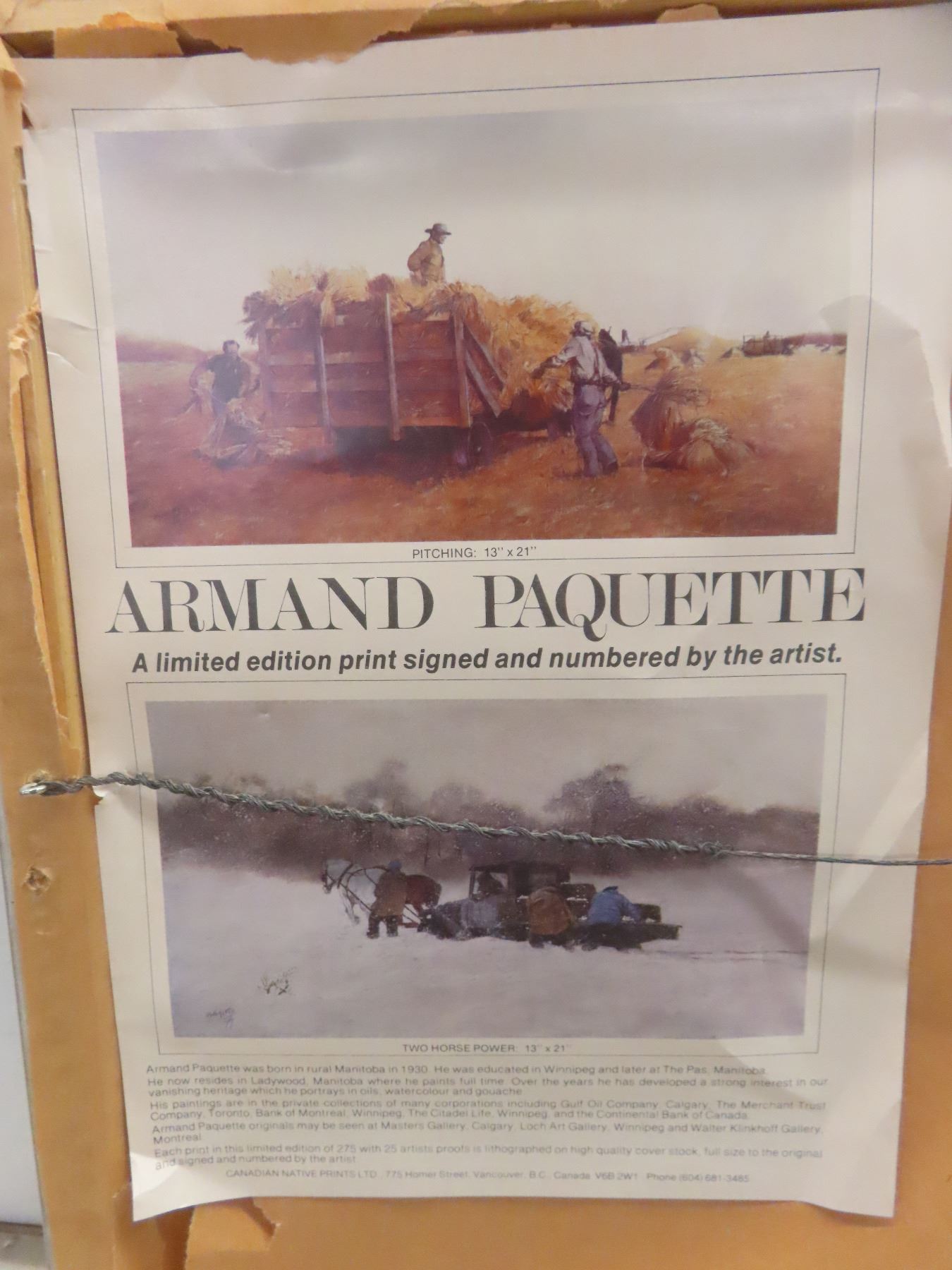 Hand signed numbered print by Armand Paquette (Two Horse Powers) 30x22