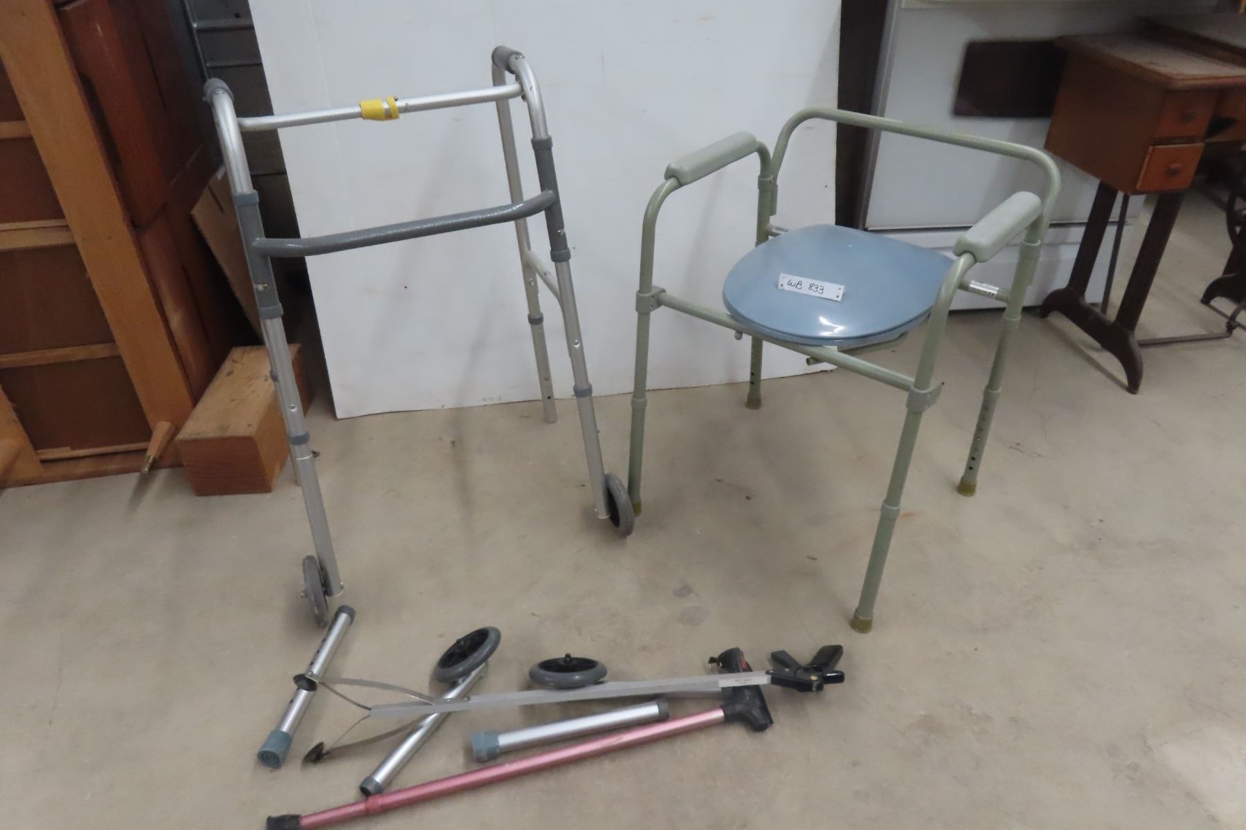 Handicap Medical Assists Walker, Commode Chair, Cane, Riach Grabbers