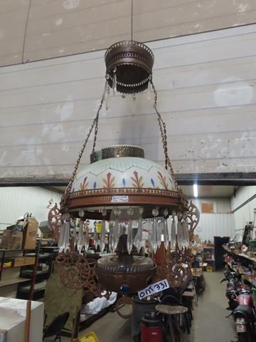 Hanging Coal Oil Lamp w Hand Painted Original Shade - Lots of Prisms- Gorgeous