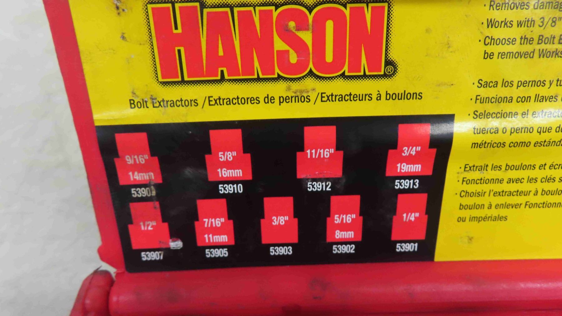 Hanson Bolt Extractor 9 pc ; 1/4" - 3/4 "