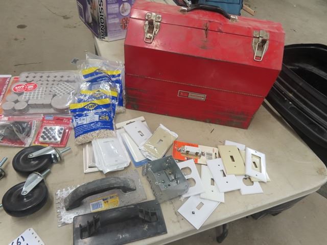 Hardware Bundle; Metal Tool Box, Timer, 5 Gal  Bucket, Caster, Plumbing + Various hardwares plus mor