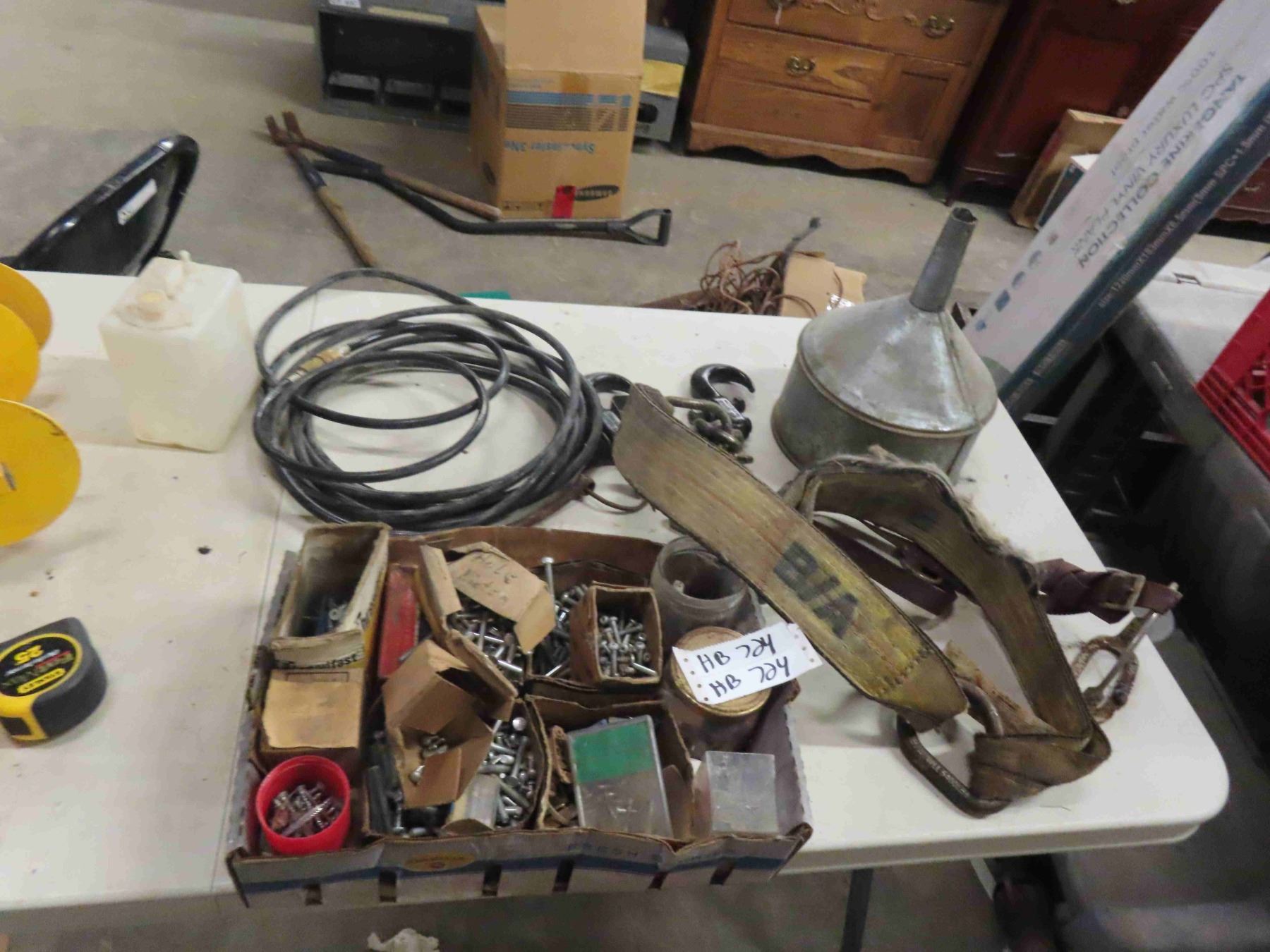 Hardware ; Screws, Bolts, Tow Hooks, Air Hose, Funnel, Battery Acid, Lift Sling, Horse Bit & 1 Stirrup