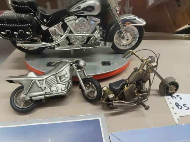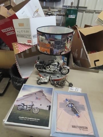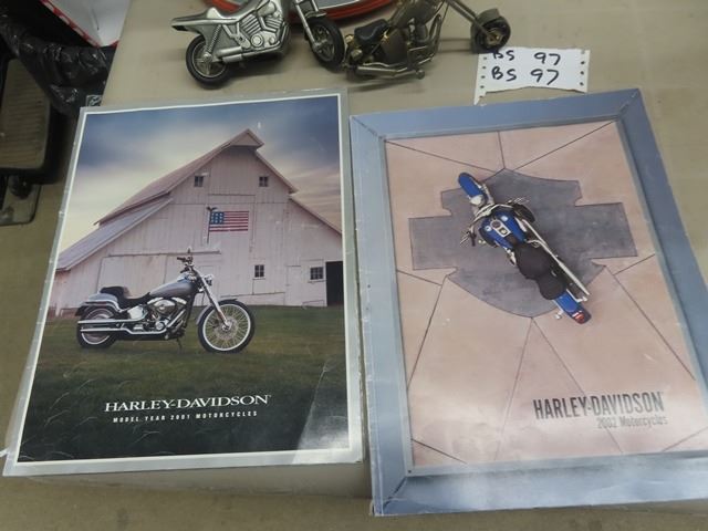 Harley Davidson Lamp, Metal Bike Ornaments, 2001 & 2002 Harley Davidson Broachures