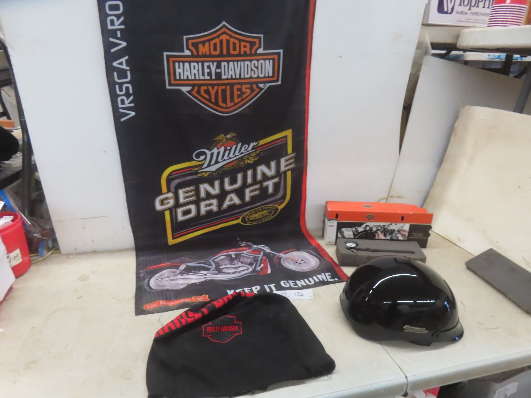 Harley Davidson / Miller Flag 24"x 48", Touring Suspension Pump, Ladies Helmet Size Small, End Cap Style Oil Filter Wrench