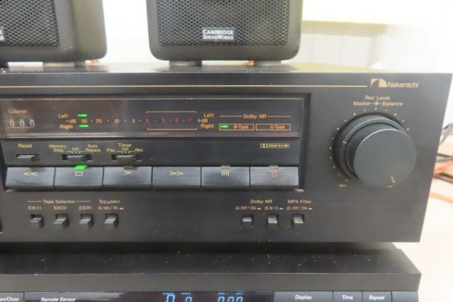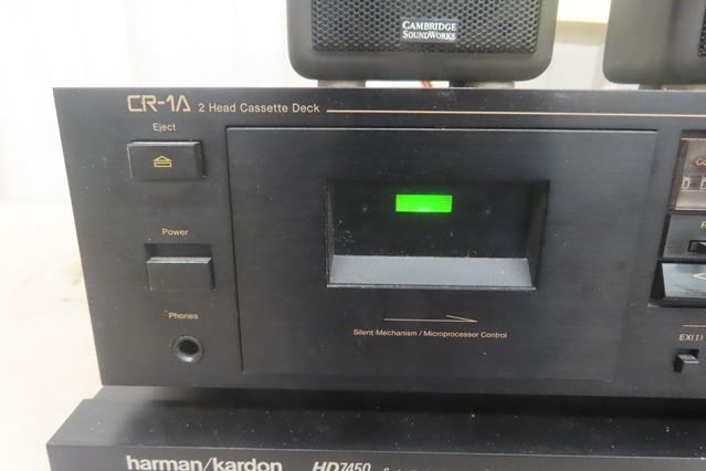Harmon Kardon HD 7450 CD Player, Nakamichi Cria Cassette Player, Cambridge Sound Works Book Shelf Speakers- Everything Powers Up