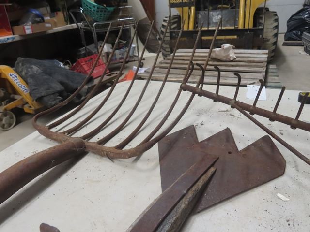 Hay Knife, Home Made Rake Made with Nails + Fork