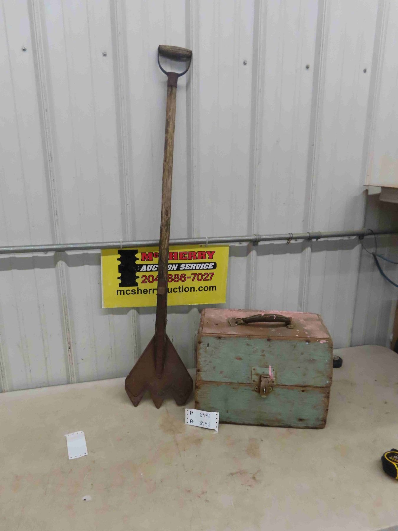 Hay Knife + Old Wooden Case 11" x 16" x 8"
