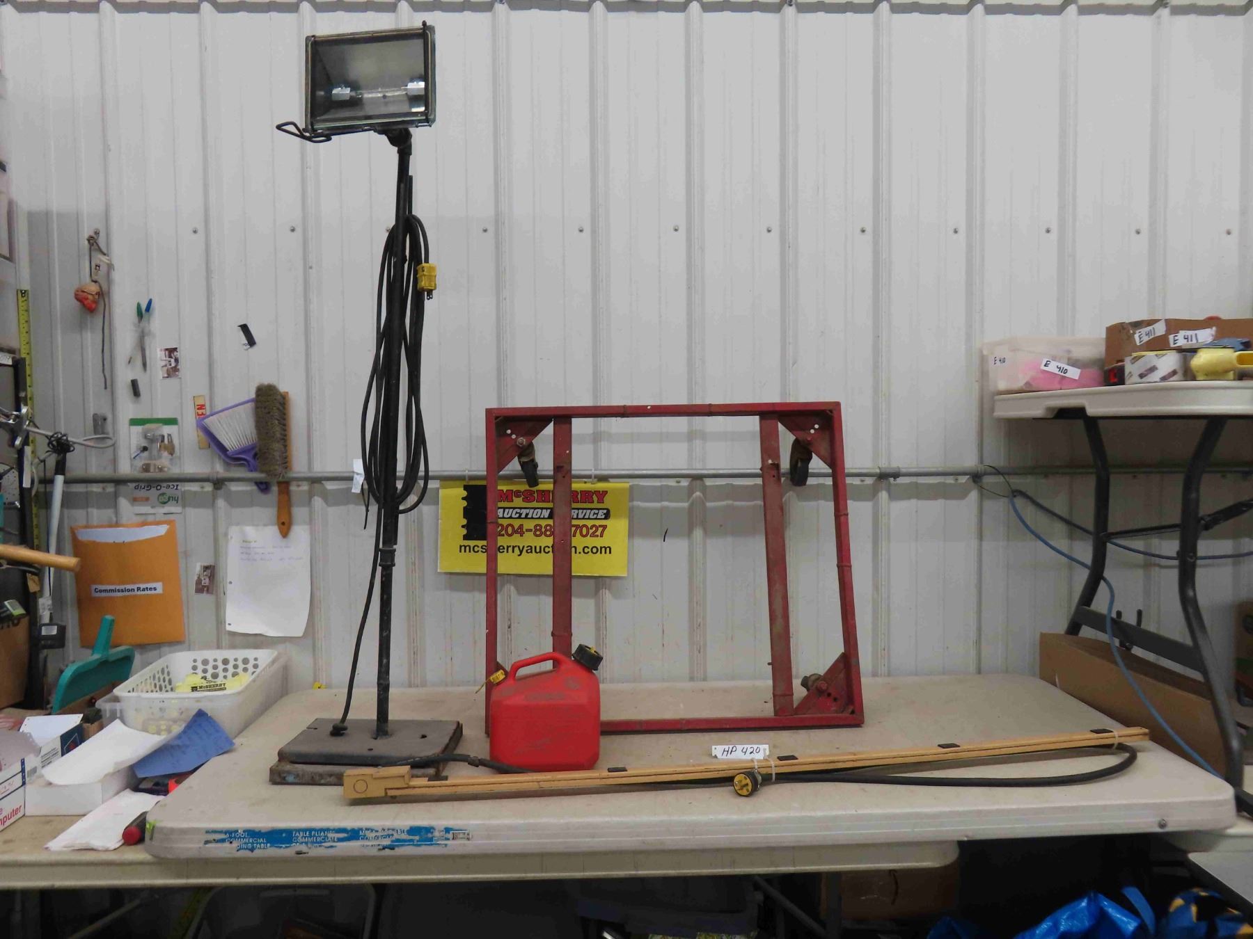 Heavy Duty Dolly 27.5" x 31" , Electrical Extension Bar 57.5" Long, Gas Container, Halogen Light on Stand