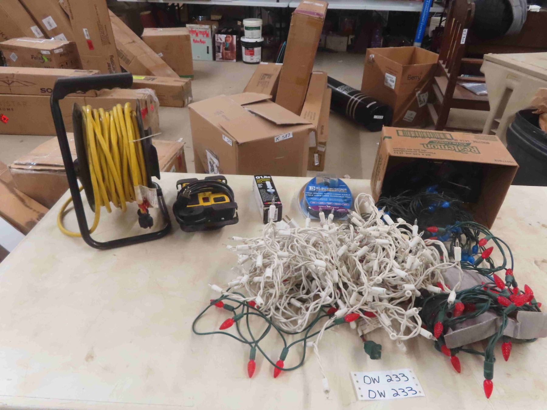 Heavy Duty Extension Cord on Reel, HDMI Cable, Power Bar, Christmas Lights