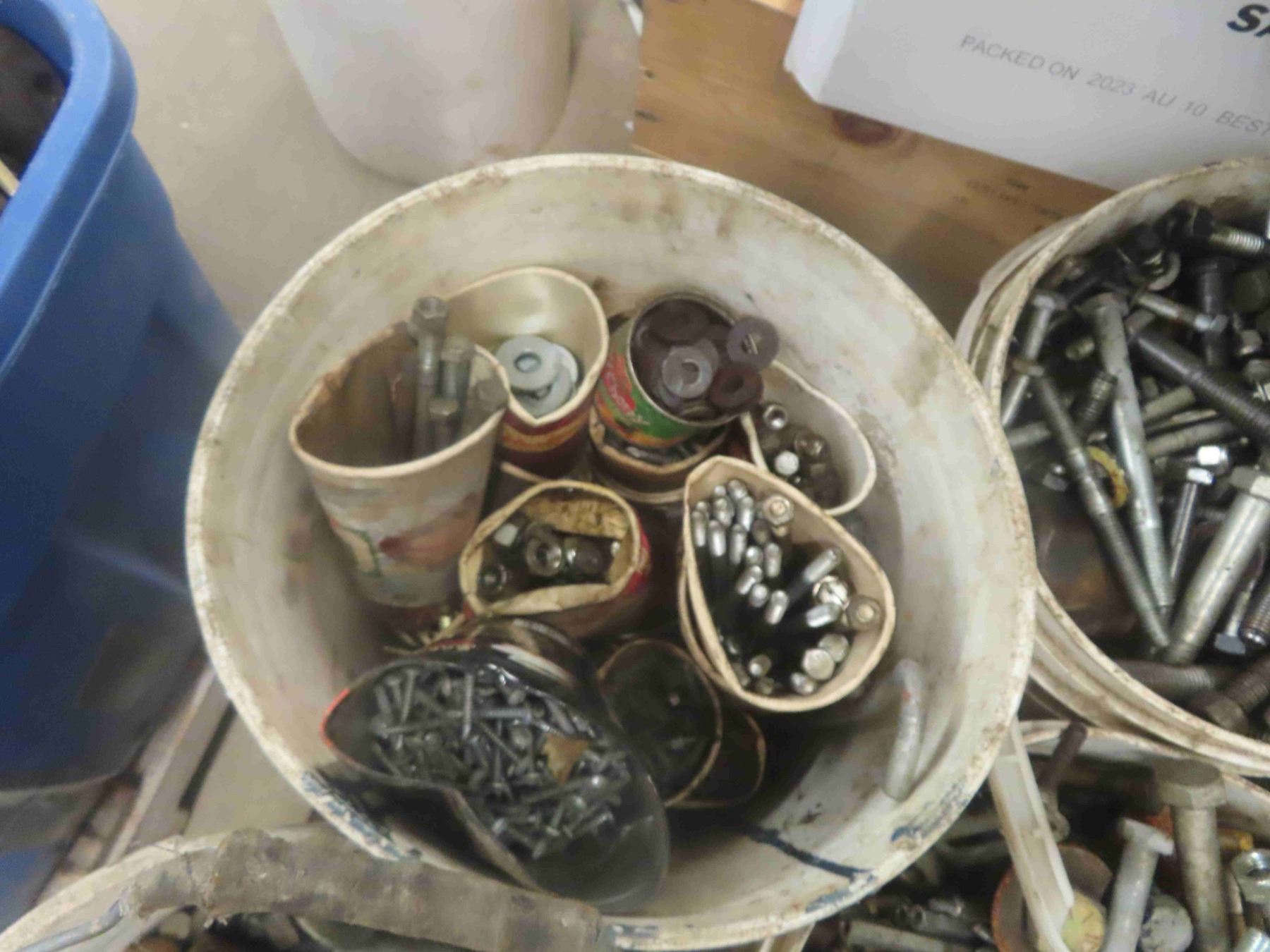 Heavy Pallet of ; Bolts, Nuts, Washers, Loader Pins, Springs - Mixture of Small + Large Sizes