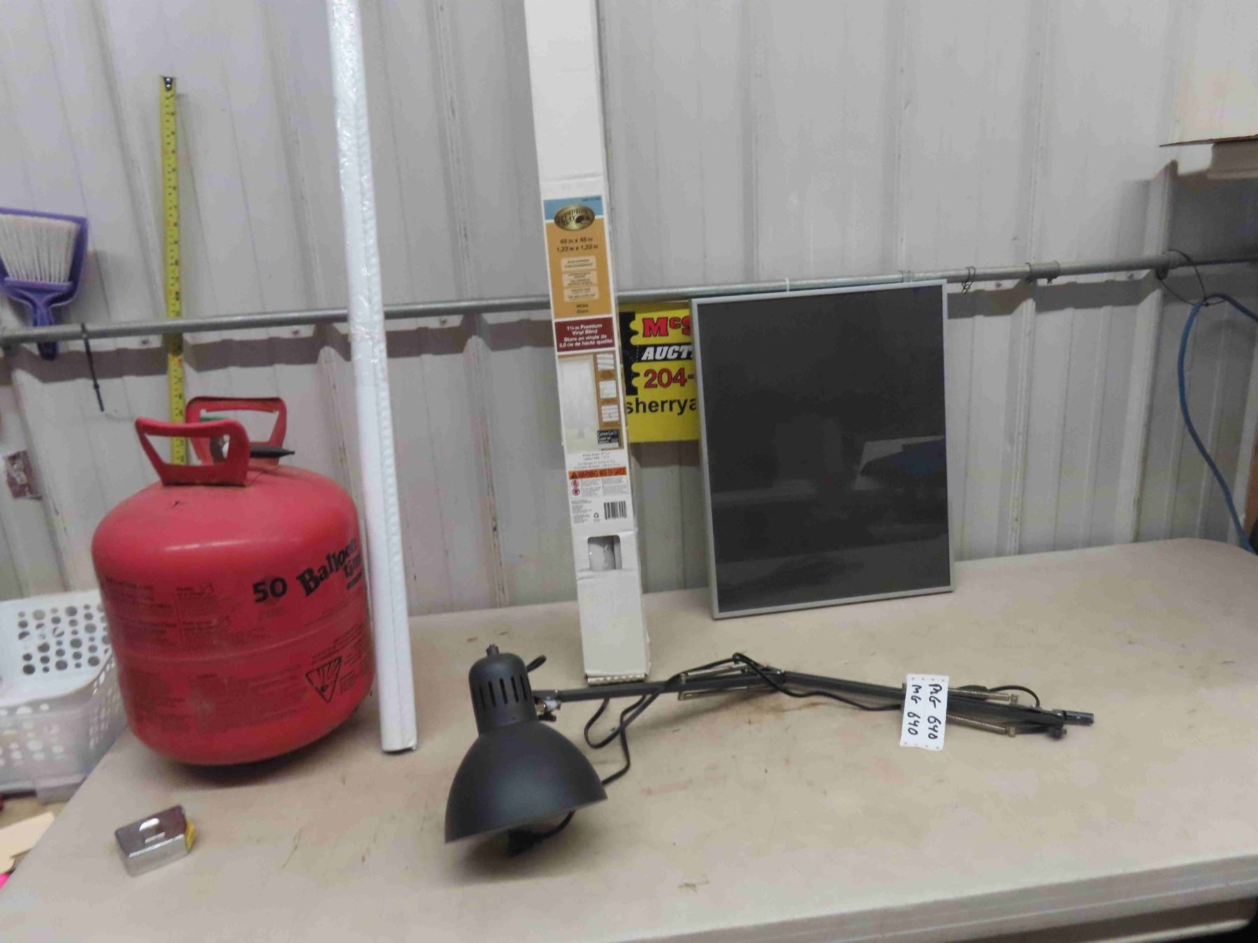 Helium Balloon Tank, 2 New Blinds ; 48" x 48" + 55" x 60" , Flex Light, Bulletin Board