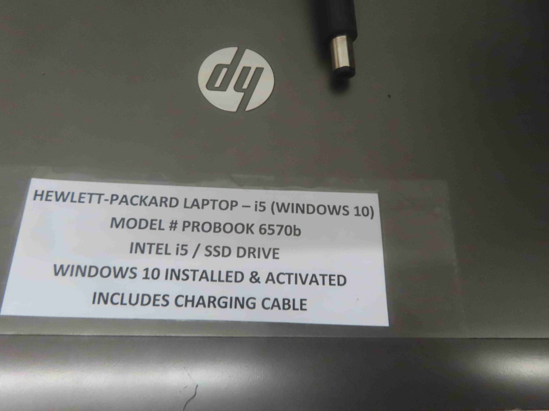 Hewlett-Packard Laptop Model # Probook 6570b with Intel i5 / SSD Drive , Windows 10 Installed and Activated Includes Charging Cable