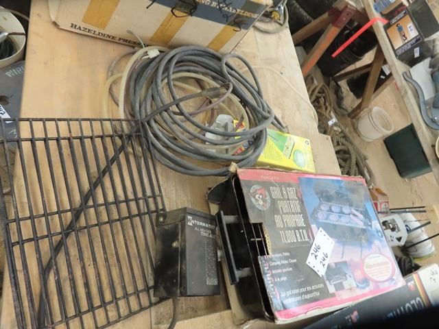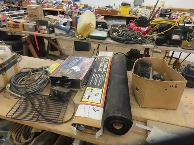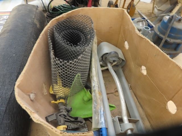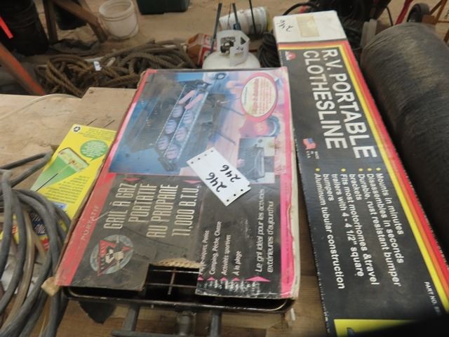 Hibachi Barbeque, RV Portable Clothes Rack, Sprinklers, Roll of Land Scaping Cover