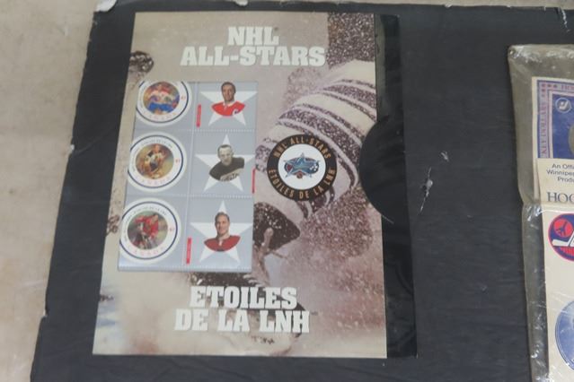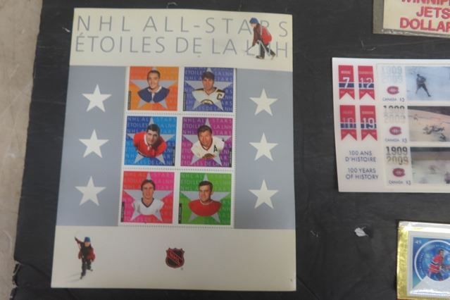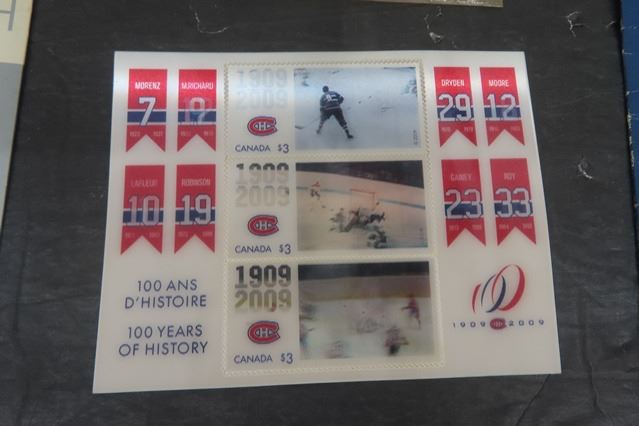 Hockey Stamps - Canada- NHL All Stars, Montreal Canadians Motion, Brian Hayward Dollar, Framed Patrick Roy Picture + Card